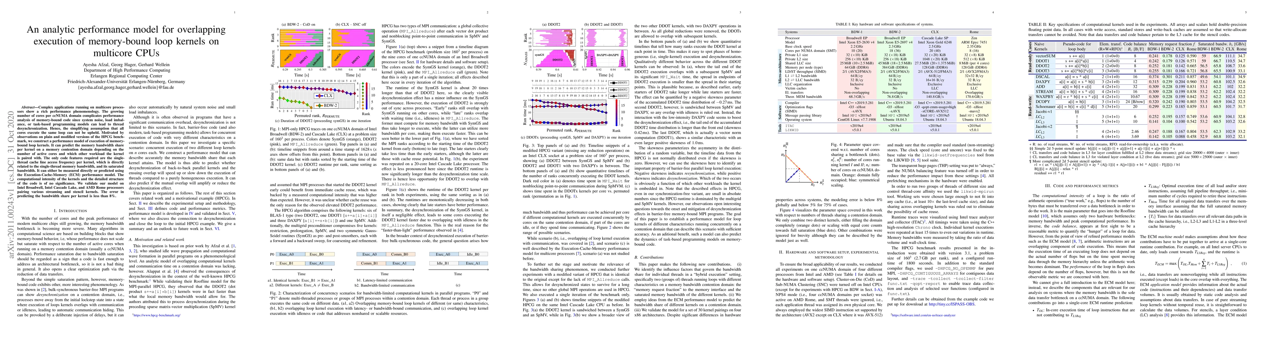This paper develops a performance model to predict memory bandwidth share for memory-bound loop kernels on multicore CPUs, accounting for overlapping execution and memory contention. The model requires only single-thread cache line access frequency and is validated on multiple processors with an error of less than 8%.