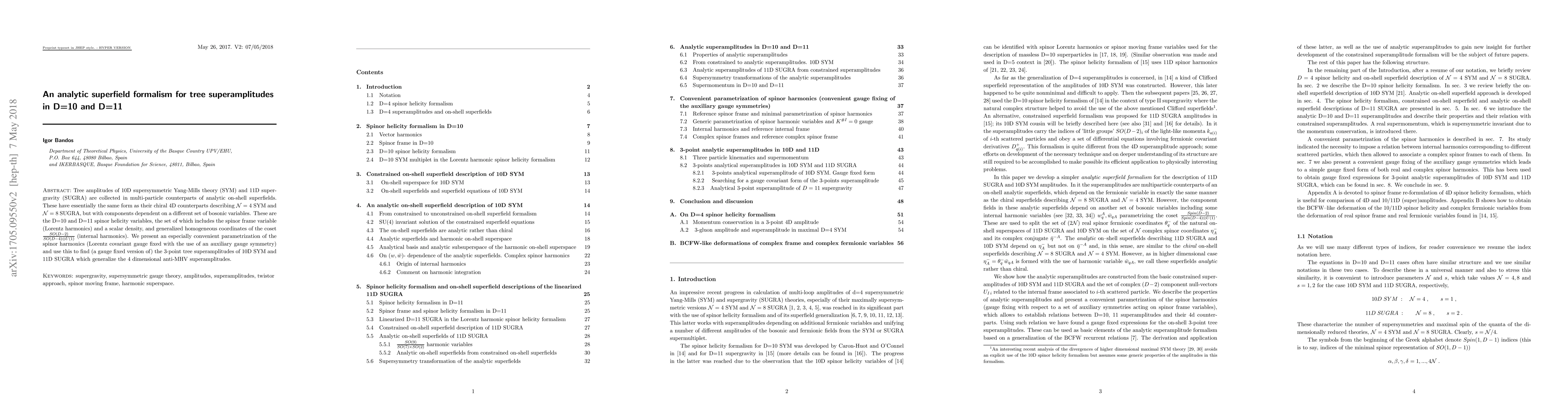 This paper introduces an analytic superfield formalism for tree superamplitudes in 10D SYM and 11D SUGRA, utilizing spinor helicity variables and generalized homogeneous coordinates. The formalism generalizes the 4D chiral superfield approach to higher dimensions, providing a gauge-fixed version of the 3-point tree superamplitudes.