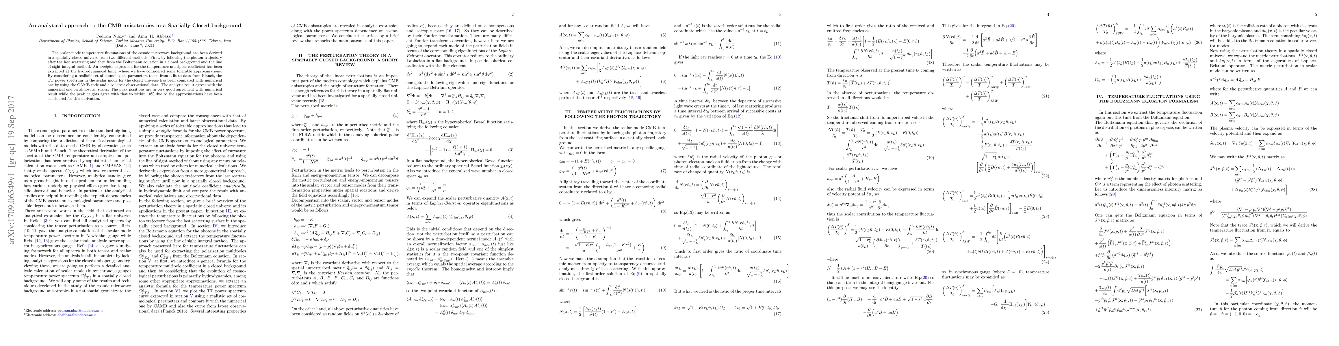 Researchers developed an analytical approach to describe cosmic microwave background (CMB) anisotropies in a closed universe, finding good agreement with numerical simulations on most scales, but noting approximations that led to 10% discrepancies in peak heights.