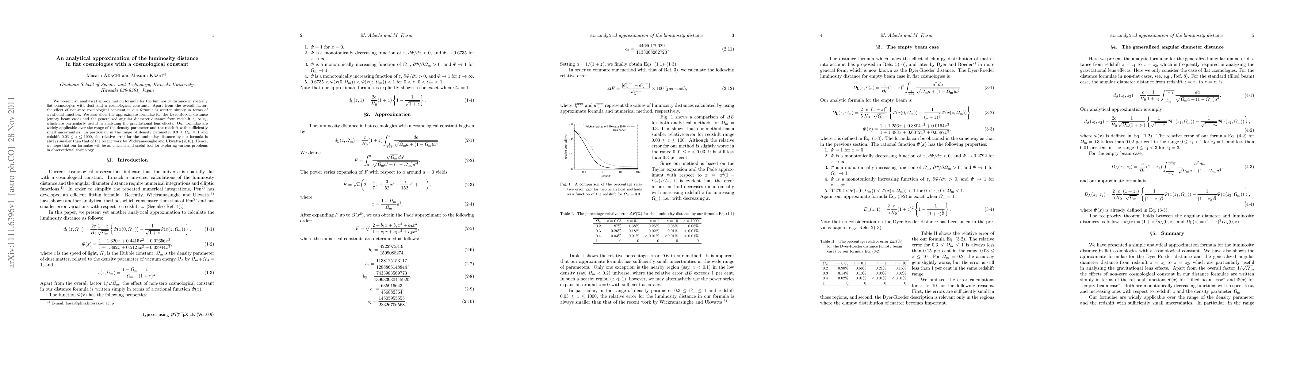 This paper introduces an analytical approximation formula for the luminosity distance in flat cosmologies with a cosmological constant, showing improved accuracy over existing methods. The formula also provides approximations for the Dyer-Roeder distance and the generalized angular diameter distance, useful for gravitational lens analysis.