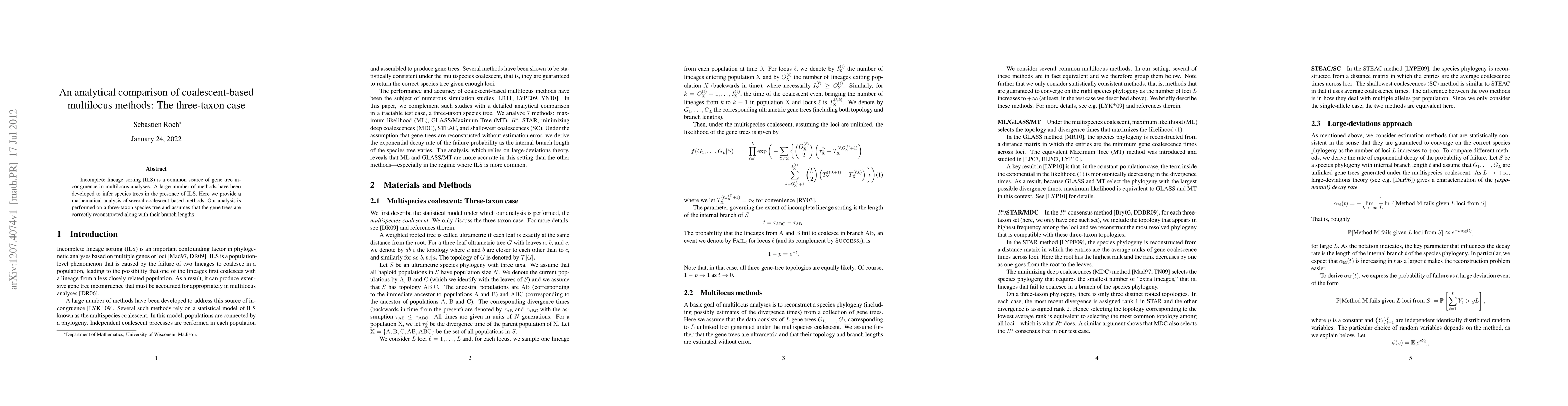 Incomplete lineage sorting (ILS) is a common source of gene tree incongruence in multilocus analyses. A large number of methods have been developed to infer species trees in the presence of ILS. Here we provide a mathematical analysis of several coalescent-based methods. Our analysis is performed on a three-taxon species tree and assumes that the gene trees are correctly reconstructed along with their branch lengths.