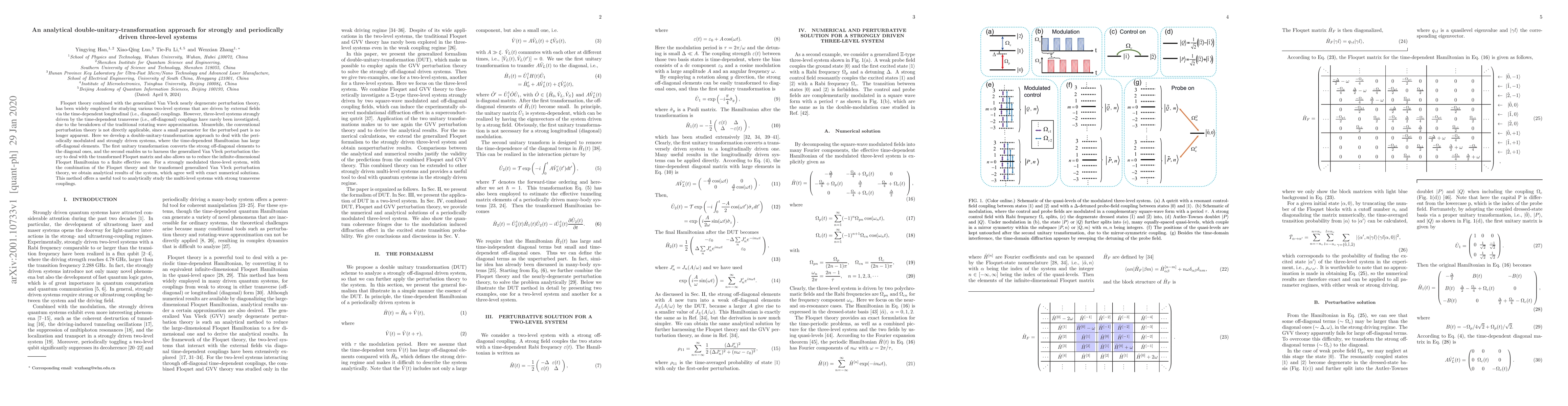 This paper develops a double-unitary-transformation approach to study three-level systems driven by strong, time-dependent transverse couplings, utilizing Floquet theory and generalized Van Vleck perturbation theory to transform and simplify the Hamiltonian, resulting in analytical solutions that match numerical results.