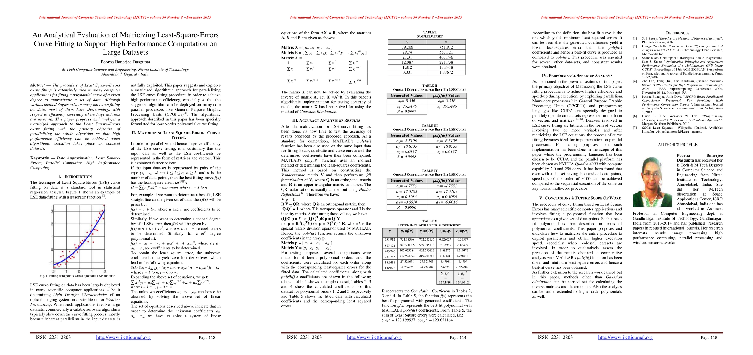 The procedure of Least Square-Errors curve fitting is extensively used in many computer applications for fitting a polynomial curve of a given degree to approximate a set of data. Although various methodologies exist to carry out curve fitting on data, most of them have shortcomings with respect to efficiency especially where huge datasets are involved. This paper proposes and analyzes a matricized approach to the Least Square-Errors curve fitting with the primary objective of parallelizing the whole algorithm so that high performance efficiency can be achieved when algorithmic execution takes place on colossal datasets.
