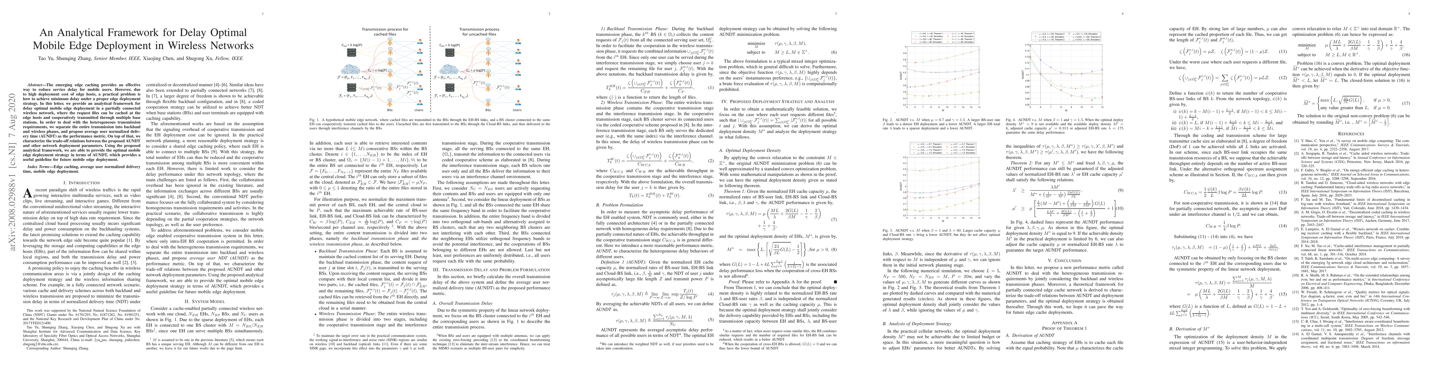 This paper presents an analytical framework for optimizing delay in mobile edge deployment in wireless networks, focusing on minimizing service delay through edge caching. It proposes a metric called average user normalized delivery time (AUNDT) to evaluate performance and provides guidelines for optimal edge host placement based on this framework.