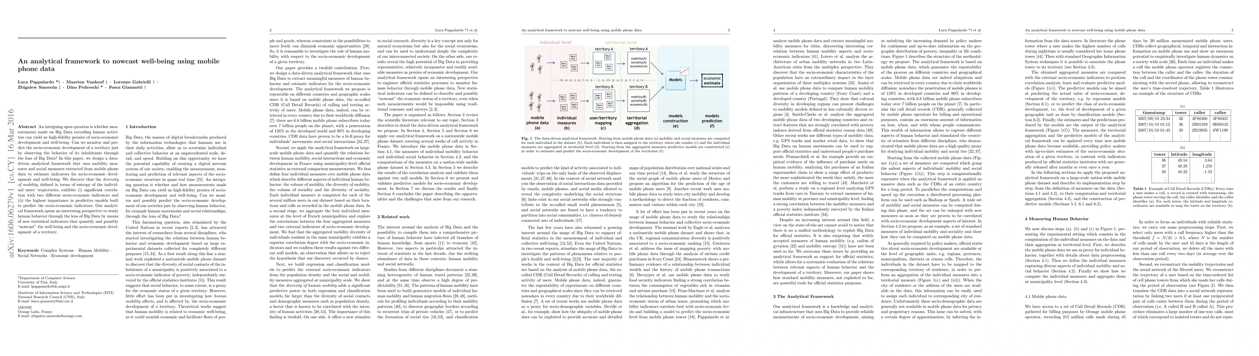 This paper develops a data-driven framework using mobile phone data to estimate socio-economic development and well-being indicators, finding that mobility diversity correlates strongly with these indicators and is crucial in predictive models. The framework offers a novel approach to "nowcasting" well-being through Big Data analysis.