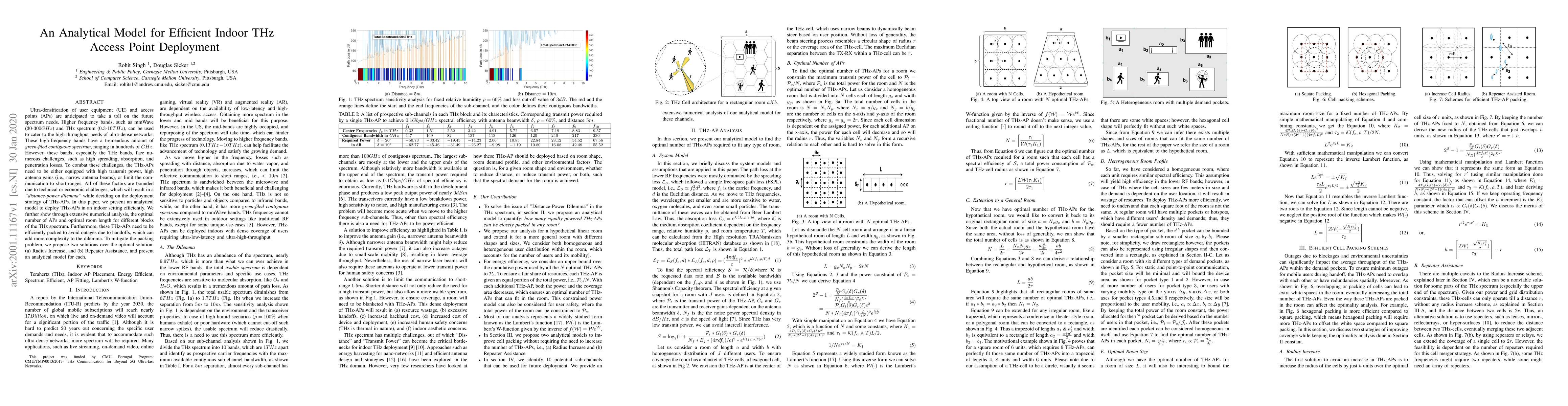 Ultra-densification of user equipment (UE) and access points (APs) are anticipated to take a toll on the future spectrum needs. Higher frequency bands, such as mmWave ($30$-$300GHz$) and THz spectrum ($0.3$-$10THz$), can be used to cater to the high-throughput needs of ultra-dense networks. These high-frequency bands have a tremendous amount of \textit{green-filed contiguous spectrum}, ranging in hundreds of $GHz$. However, these bands, especially the THz bands, face numerous challenges, such as high spreading, absorption, and penetration losses. To combat these challenges, the THz-APs need to be either equipped with high transmit power, high antenna gains (i.e., narrow antenna beams), or limit the communication to short-ranges. All of these factors are bounded due to technical or economic challenges, which will result in a \textit{"distance-power dilemma"} while deciding on the deployment strategy of THz-APs. In this paper, we present an analytical model to deploy THz-APs in an indoor setting efficiently. We further show through extensive numerical analysis, the optimal number of APs and optimal room length for different blocks of the THz spectrum. Furthermore, these THz-APs need to be efficiently packed to avoid outages due to handoffs, which can add more complexity to the dilemma. To mitigate the packing problem, we propose two solutions over the optimal solution: (a) Radius Increase, and (b) Repeater Assistance, and present an analytical model for each.