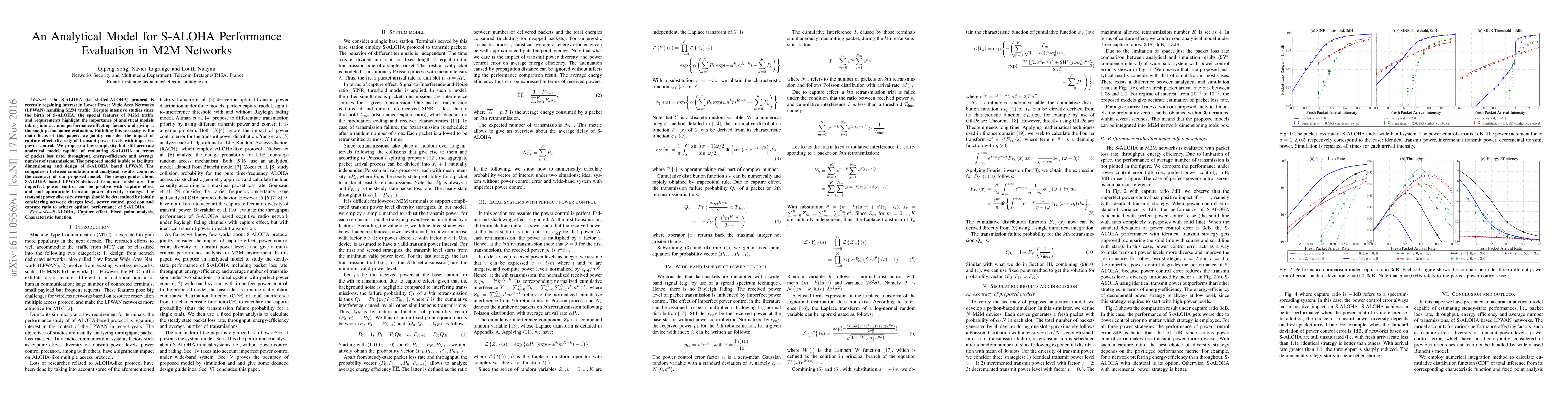 This paper proposes an analytical model for evaluating S-ALOHA performance in LPWAN M2M networks, considering factors like capture effect, transmit power diversity, and imperfect power control. The model accurately assesses packet loss rate, throughput, energy-efficiency, and transmission count, aiding in the design and dimensioning of S-ALOHA based LPWAN systems.