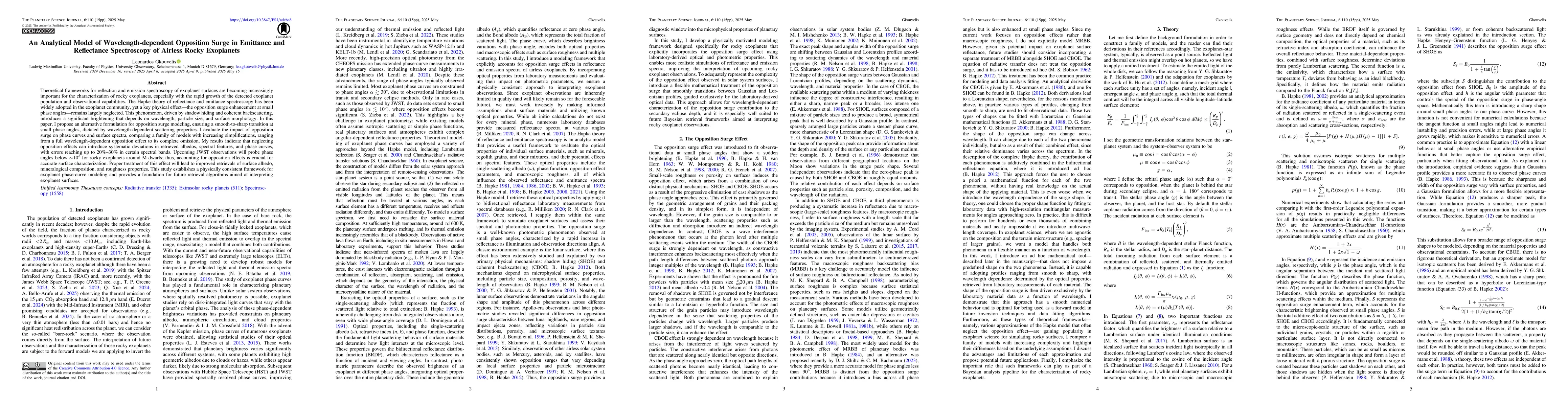 This work differs from existing research by explicitly accounting for the wavelength-dependent nature of opposition surge, which has been largely neglected in previous theoretical frameworks for exoplanet reflectance and emittance spectroscopy.