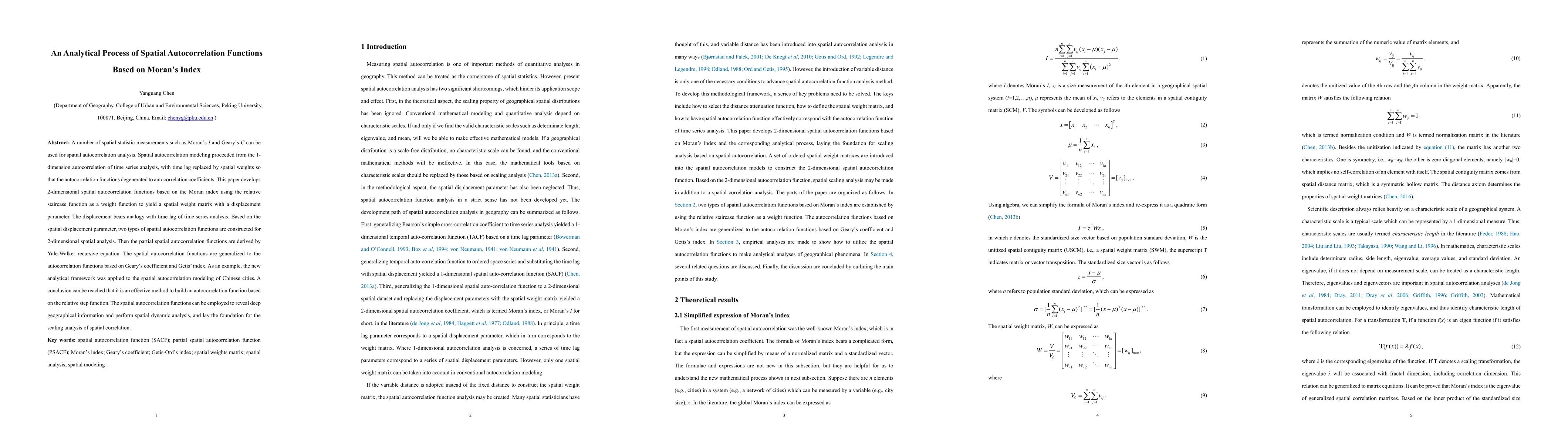 This paper develops 2-dimensional spatial autocorrelation functions based on Moran's index using a relative staircase function, constructing partial spatial autocorrelation functions via the Yule-Walker recursive equation and applying the method to Chinese cities for spatial dynamic analysis.