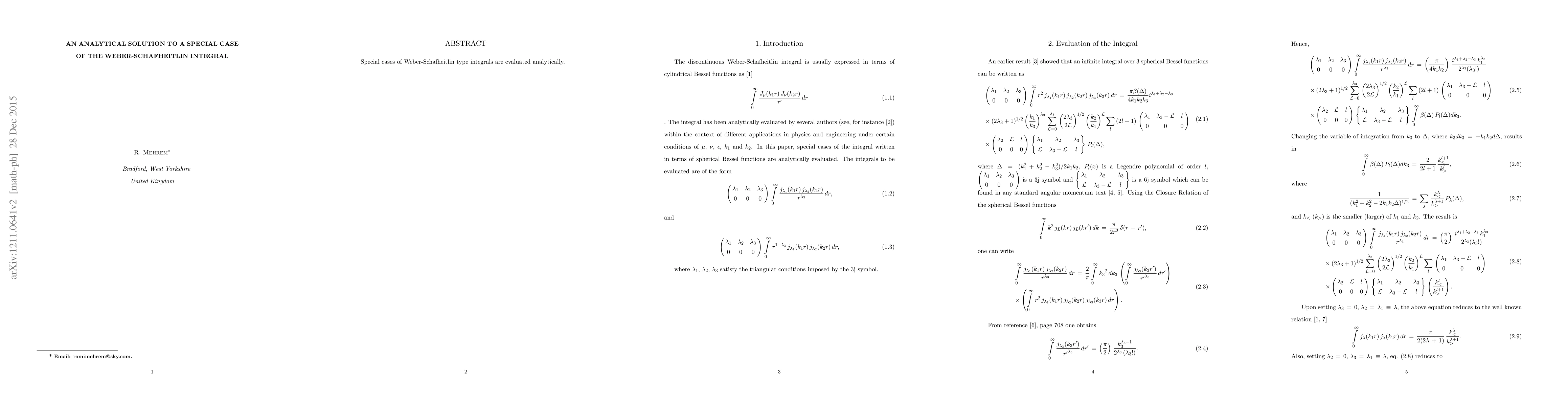 Special cases of Weber-Schafheitlin type integrals are evaluated analytically.