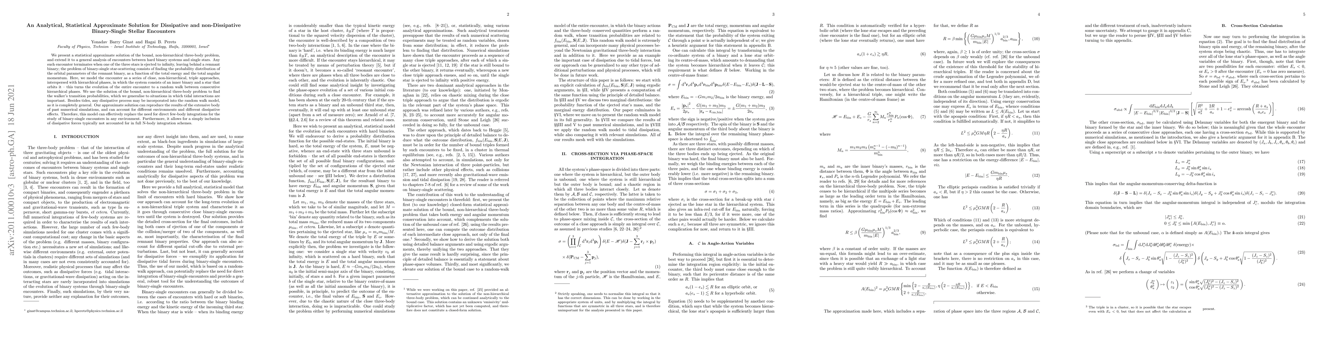 We present a statistical approximate solution of the bound, non-hierarchical three-body problem, and extend it to a general analysis of encounters between hard binary systems and single stars. Any such encounter terminates when one of the three stars is ejected to infinity, leaving behind a remnant binary; the problem of binary-single star-scattering consists of finding the probability distribution of the orbital parameters of the remnant binary, as a function of the total energy and the total angular momentum. Here, we model the encounter as a series of close, non-hierarchical, triple approaches, interspersed with hierarchical phases, in which the system consists of an inner binary and a star that orbits it -- this turns the evolution of the entire encounter to a random walk between consecutive hierarchical phases. We use the solution of the bound, non-hierarchical three-body problem to find the walker's transition probabilities, which we generalise to situations in which tidal interactions are important. Besides tides, any dissipative process may be incorporated into the random walk model, as it is completely general. Our approximate solution can reproduce the results of the extensive body of past numerical simulations, and can account for different environments and different dissipative effects. Therefore, this model can effectively replace the need for direct few-body integrations for the study of binary-single encounters in any environment. Furthermore, it allows for a simply inclusion of dissipative forces typically not accounted for in full N-body integration schemes.
