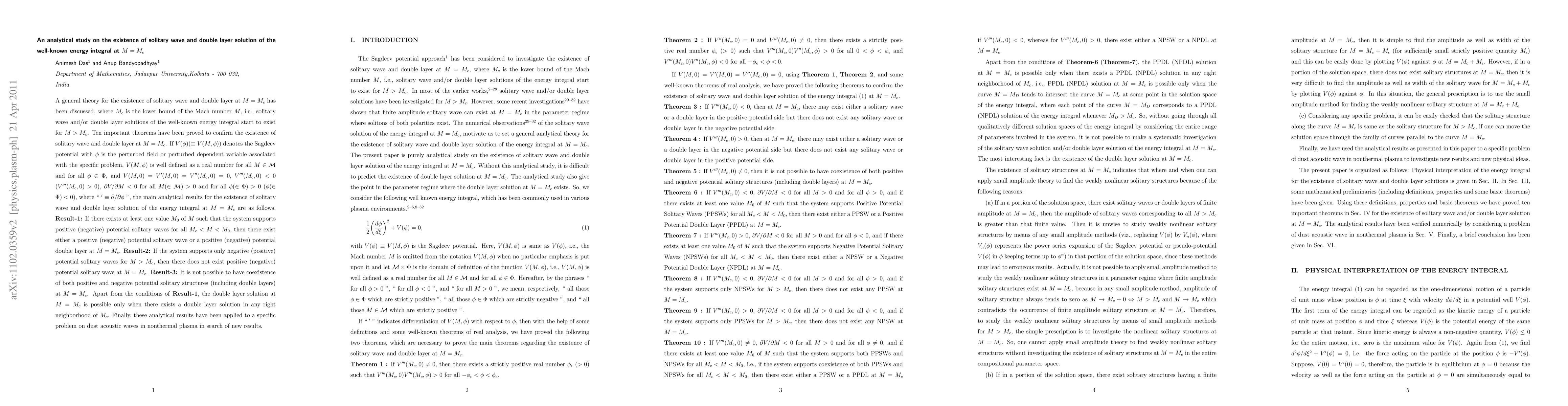 A general theory for the existence of solitary wave and double layer at M= Mc