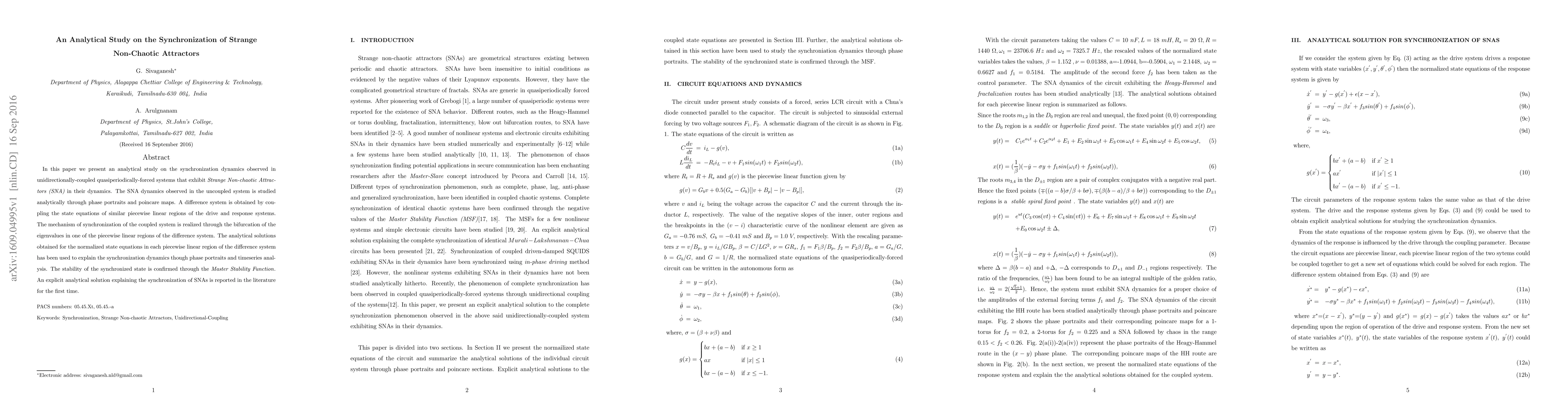In this paper we present an analytical study on the synchronization dynamics observed in unidirectionally-coupled quasiperiodically-forced systems that exhibit Strange Non-chaotic Attractors (SNA) in their dynamics. The SNA dynamics observed in the uncoupled system is studied analytically through phase portraits and poincare maps. A difference system is obtained by coupling the state equations of similar piecewise linear regions of the drive and response systems. The mechanism of synchronization of the coupled system is realized through the bifurcation of the eigenvalues in one of the piecewise linear regions of the difference system. The analytical solutions obtained for the normalized state equations in each piecewise linear region of the difference system has been used to explain the synchronization dynamics though phase portraits and timeseries analysis. The stability of the synchronized state is confirmed through the Master Stability Function. An explicit analytical solution explaining the synchronization of SNAs is reported in the literature for the first time.