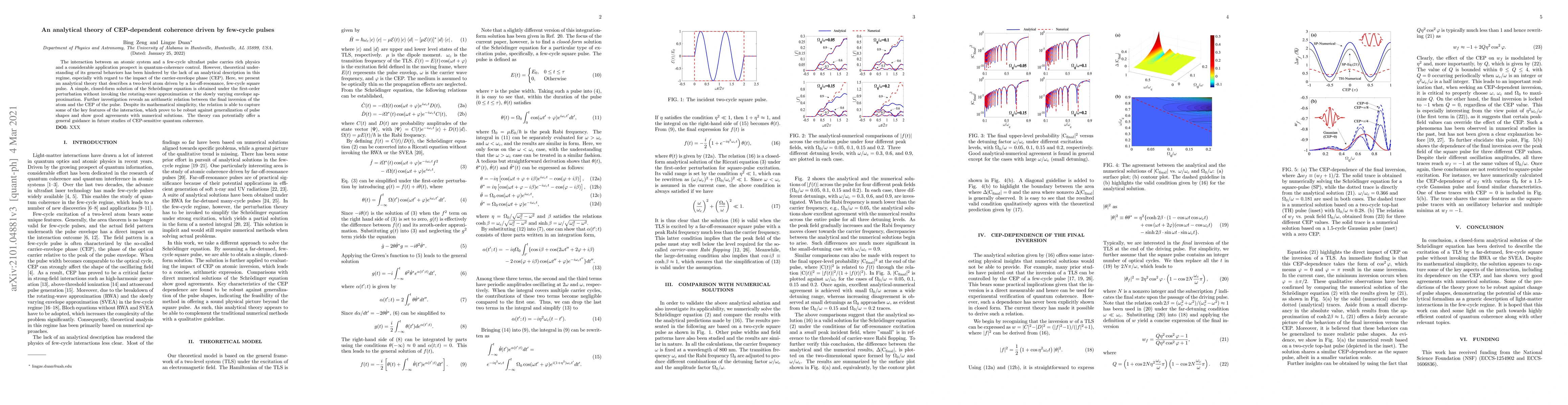 This paper develops an analytical theory to describe the interaction between a two-level atom and few-cycle ultrafast pulses, focusing on the carrier-envelope phase (CEP) impact. The theory provides a closed-form solution for the Schrödinger equation, revealing a relation between atom inversion and CEP that aligns well with numerical results.