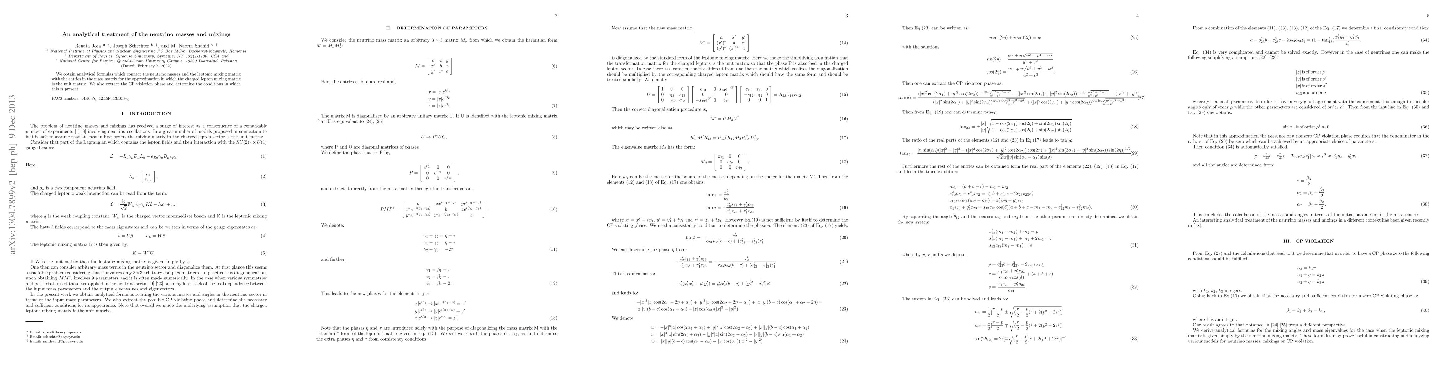 We obtain analytical formulas which connect the neutrino masses and the leptonic mixing matrix with the entries in the mass matrix for the approximation in which the charged lepton mixing matrix is the unit matrix. We also extract the CP violation phase and determine the conditions in which this is present.