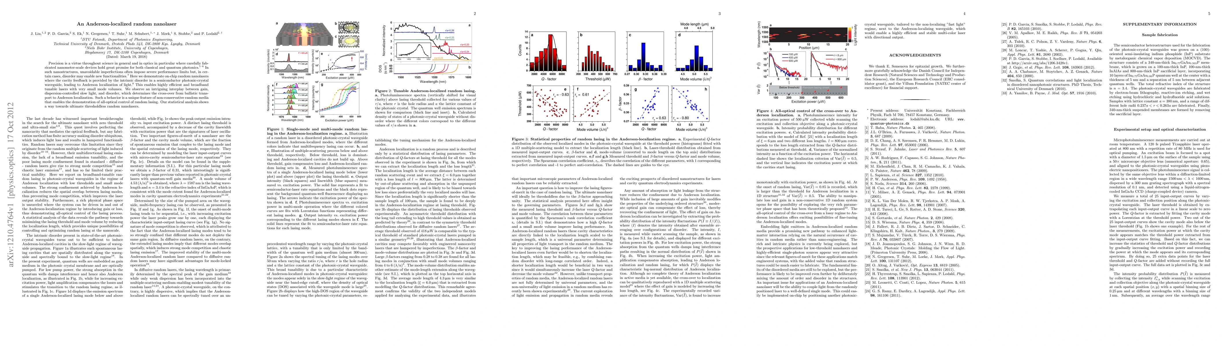 The paper demonstrates on-chip random nanolasers utilizing intrinsic disorder in a semiconductor photonic-crystal waveguide for cavity feedback, achieving efficient, tunable, and highly localized light via Anderson localization. The study highlights the interplay between gain, slow light, and disorder, leading to potential thresholdless random lasing.