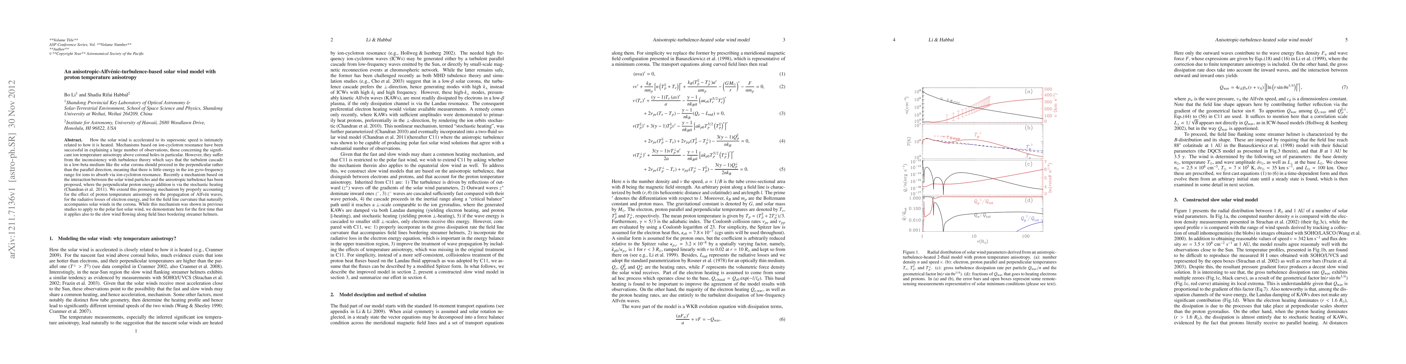 This paper proposes a solar wind model based on anisotropic Alfvenic turbulence, explaining the acceleration and heating of solar wind through stochastic heating, addressing proton temperature anisotropy, and showing its applicability to both polar fast and slow solar winds.