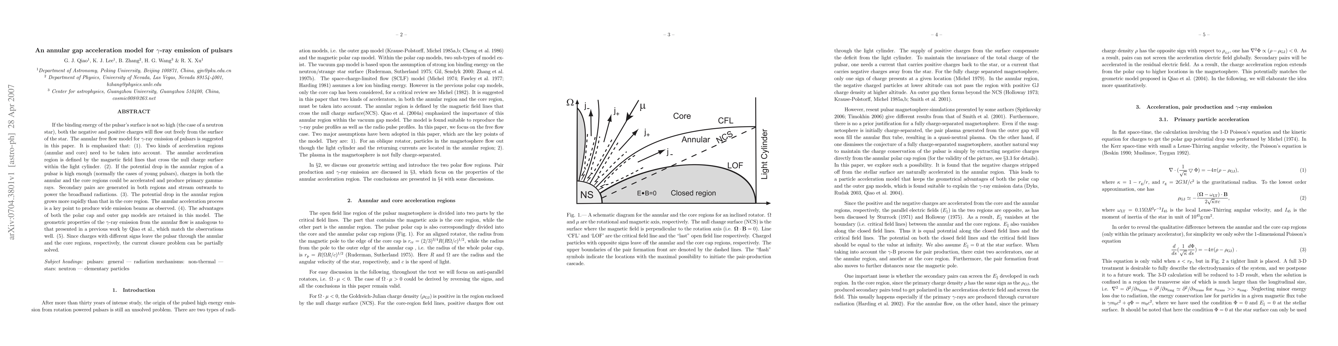 This paper proposes an annular gap acceleration model for $\gamma$-ray emission in pulsars, emphasizing the importance of both annular and core acceleration regions. The model suggests that high potential drops in the annular region can accelerate charges to produce primary gamma-rays, with secondary pairs contributing to broadband radiations, and resolves the current closure problem by different charge flows through annular and core regions.