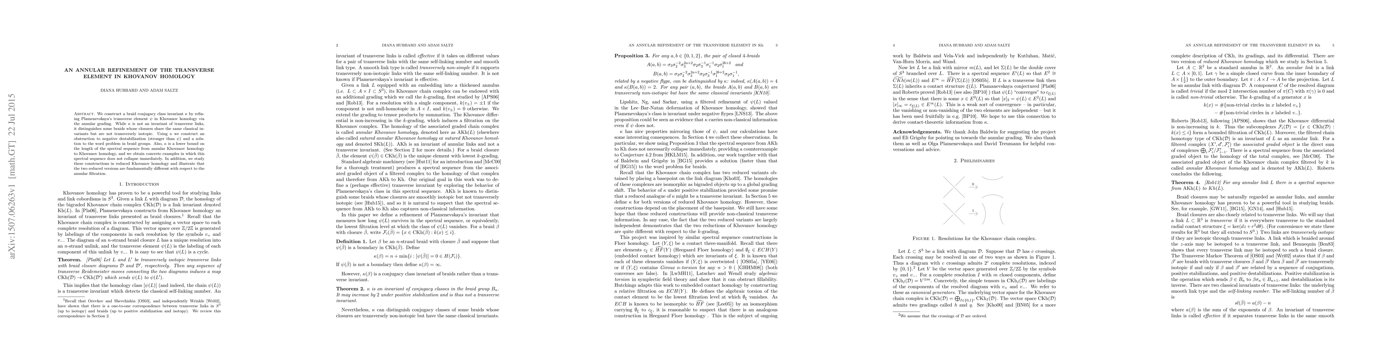 This paper refines the transverse element in Khovanov homology through an annular grading to create a new invariant $\kappa$, which distinguishes braids that are not transversely isotopic despite sharing classical invariants. $\kappa$ provides an obstruction to negative destabilization and solves the word problem in braid groups, while also serving as a lower bound on the length of the spectral sequence in annular Khovanov homology.