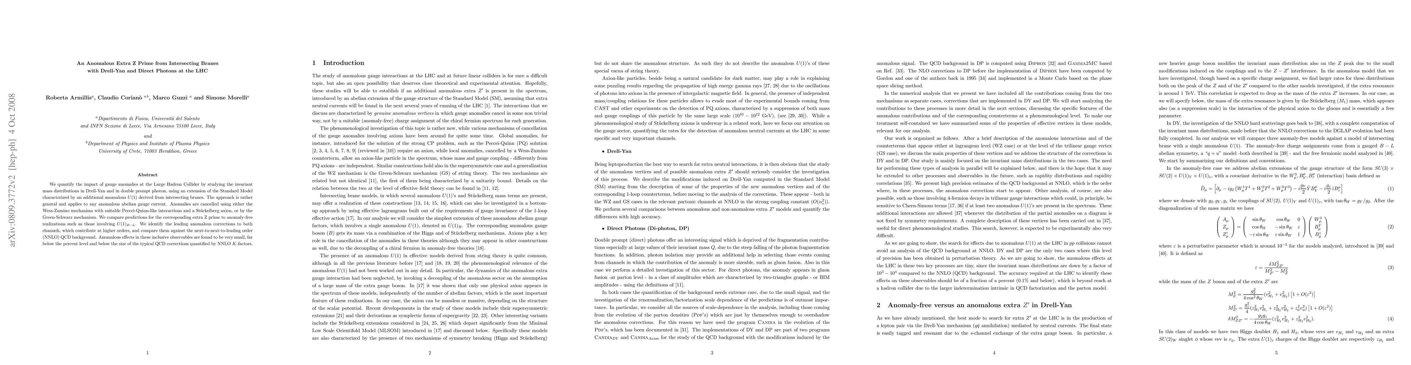 We quantify the impact of gauge anomalies at the Large Hadron Collider by studying the invariant mass distributions in Drell-Yan and in double prompt photon, using an extension of the Standard Model characterized by an additional anomalous U(1) derived from intersecting branes. The approach is rather general and applies to any anomalous abelian gauge current. Anomalies are cancelled using either the Wess-Zumino mechanism with suitable Peccei-Quinn-like interactions and a Stueckelberg axion, or by the Green-Schwarz mechanism. We compare predictions for the corresponding extra Z-prime to anomaly-free realizations such as those involving U(1)_{B-L}. We identify the leading anomalous corrections to both channels, which contribute at higher orders, and compare them against the next-to-next-to-leading order (NNLO) QCD background. Anomalous effects in these inclusive observables are found to be very small, far below the percent level and below the size of the typical QCD corrections quantified by NNLO K-factors.
