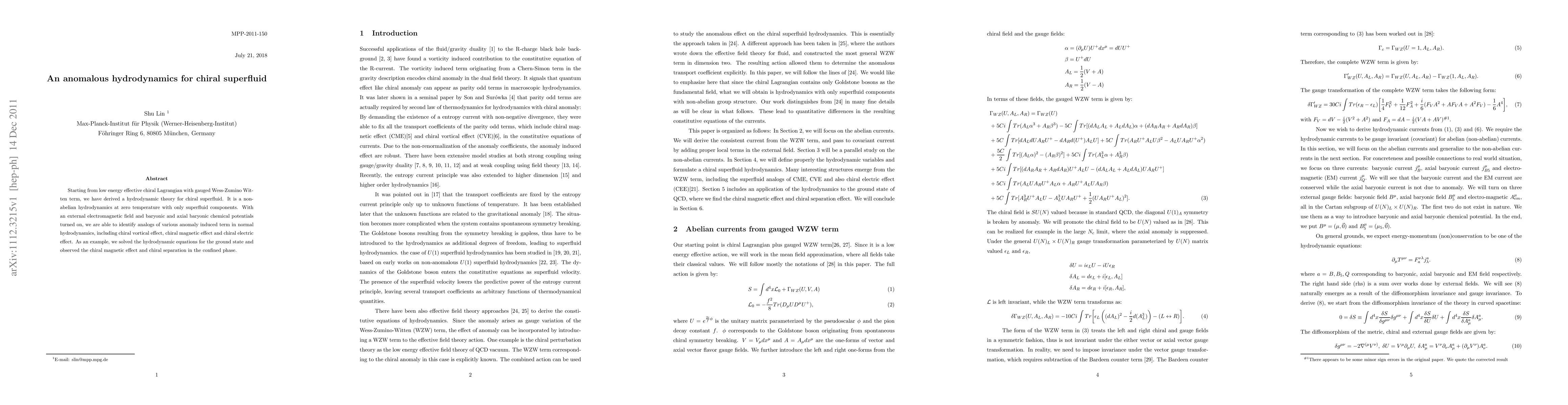 This paper develops a hydrodynamic theory for chiral superfluids based on a low-energy effective chiral Lagrangian, identifying anomaly-induced effects such as the chiral vortical and magnetic effects. It demonstrates these phenomena through solving hydrodynamic equations in the presence of electromagnetic fields and chemical potentials.