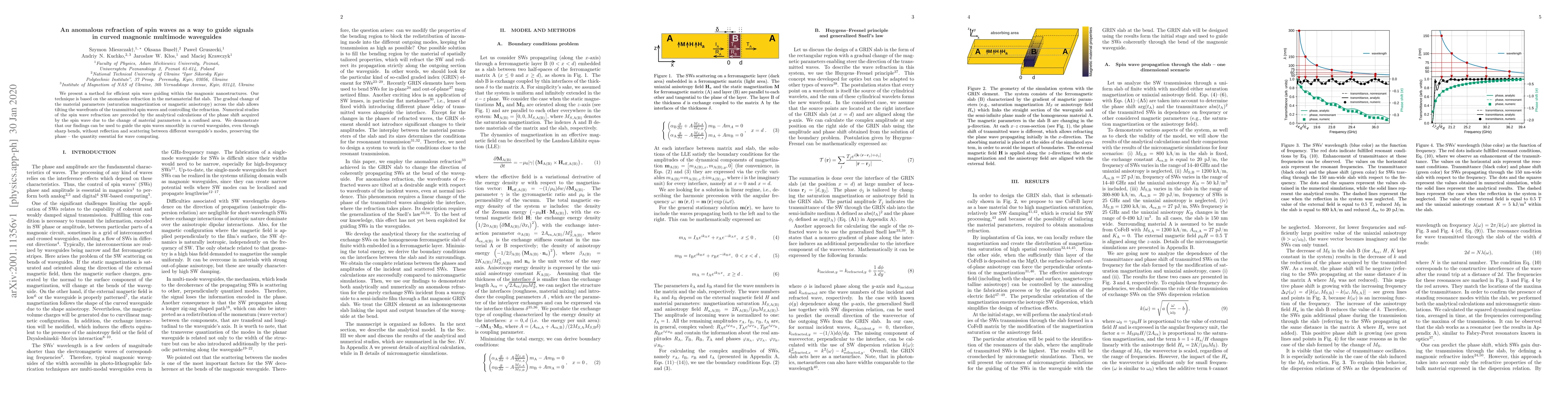 We present a method for efficient spin wave guiding within the magnonic nanostructures. Our technique is based on the anomalous refraction in the metamaterial flat slab. The gradual change of the material parameters (saturation magnetization or magnetic anisotropy) across the slab allows tilting the wavefronts of the transmitted spin waves and controlling the refraction. Numerical studies of the spin wave refraction are preceded by the analytical calculations of the phase shift acquired by the spin wave due to the change of material parameters in a confined area. We demonstrate that our findings can be used to guide the spin waves smoothly in curved waveguides, even through sharp bends, without reflection and scattering between different waveguide's modes, preserving the phase -- the quantity essential for wave computing.