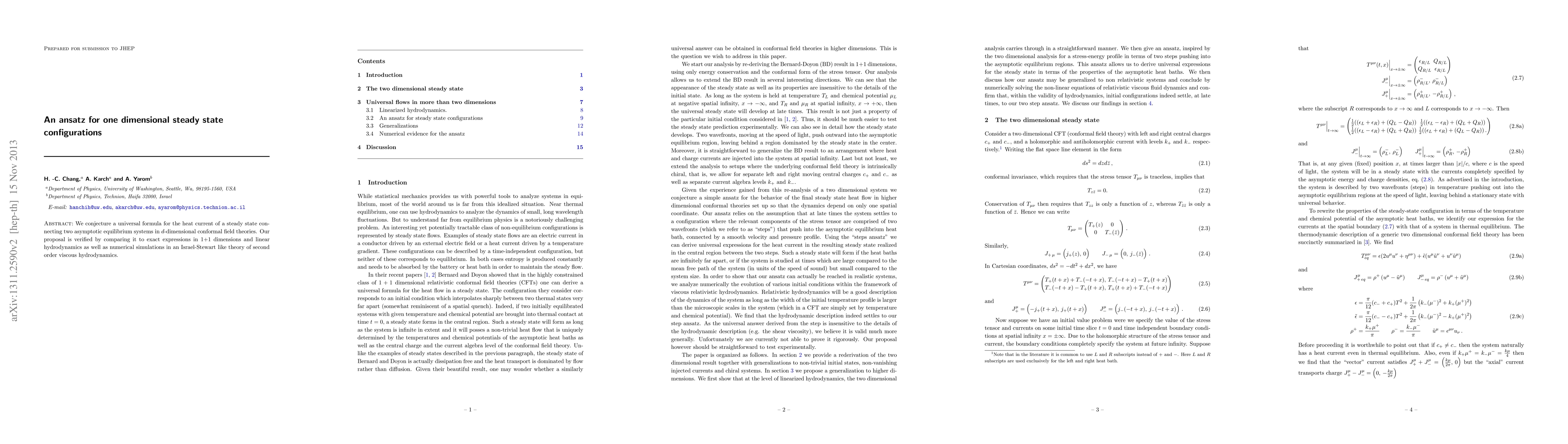 We conjecture a universal formula for the heat current of a steady state connecting two asymptotic equilibrium systems in d-dimensional conformal field theories. Our proposal is verified by comparing it to exact expressions in 1+1 dimensions and linear hydrodynamics as well as numerical simulations in an Israel-Stewart like theory of second order viscous hydrodynamics.