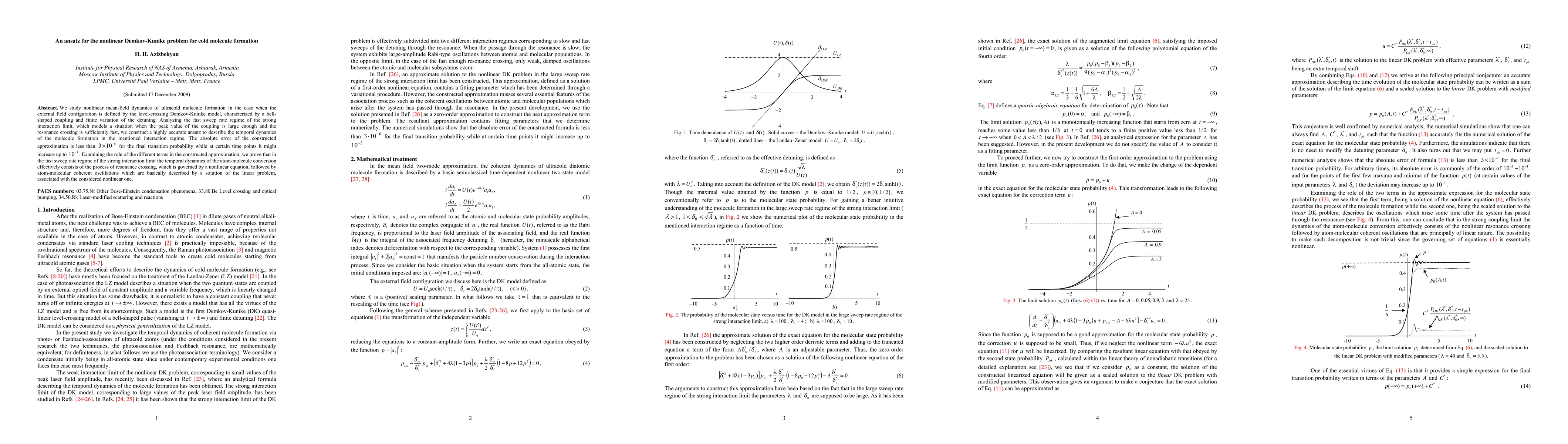 This paper develops an accurate ansatz for modeling nonlinear mean-field dynamics in ultracold molecule formation under the Demkov-Kunike model, achieving an error of less than 3*10^-6 in transition probability. The study reveals that the dynamics involve resonance crossing followed by coherent oscillations.