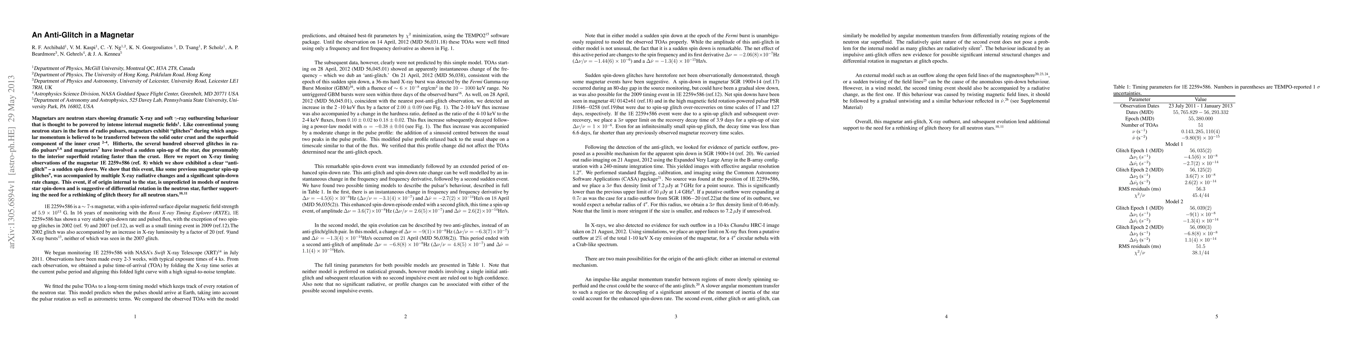 This paper reports the first observed "anti-glitch" in the magnetar 1E 2259+586, characterized by a sudden spin-down instead of the usual spin-up, accompanied by significant X-ray changes, challenging existing neutron star glitch models and suggesting differential rotation within the star.
