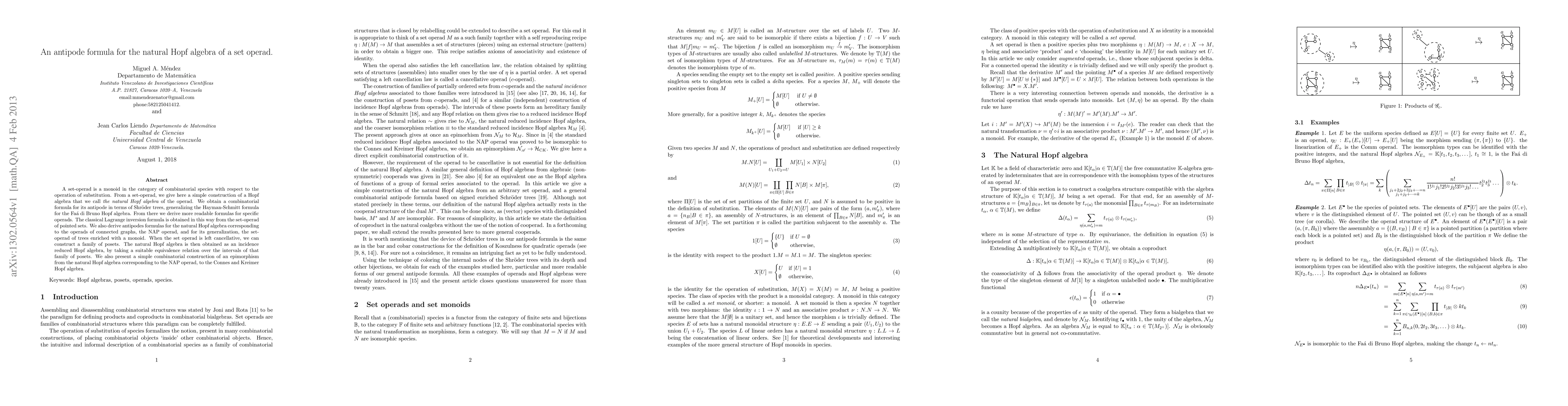 This paper constructs the natural Hopf algebra of a set operad and provides a combinatorial formula for its antipode using Schröder trees, generalizing existing formulas. It also derives specific antipode formulas for operads of connected graphs and trees, and establishes an epimorphism to the Connes and Kreimer Hopf algebra.