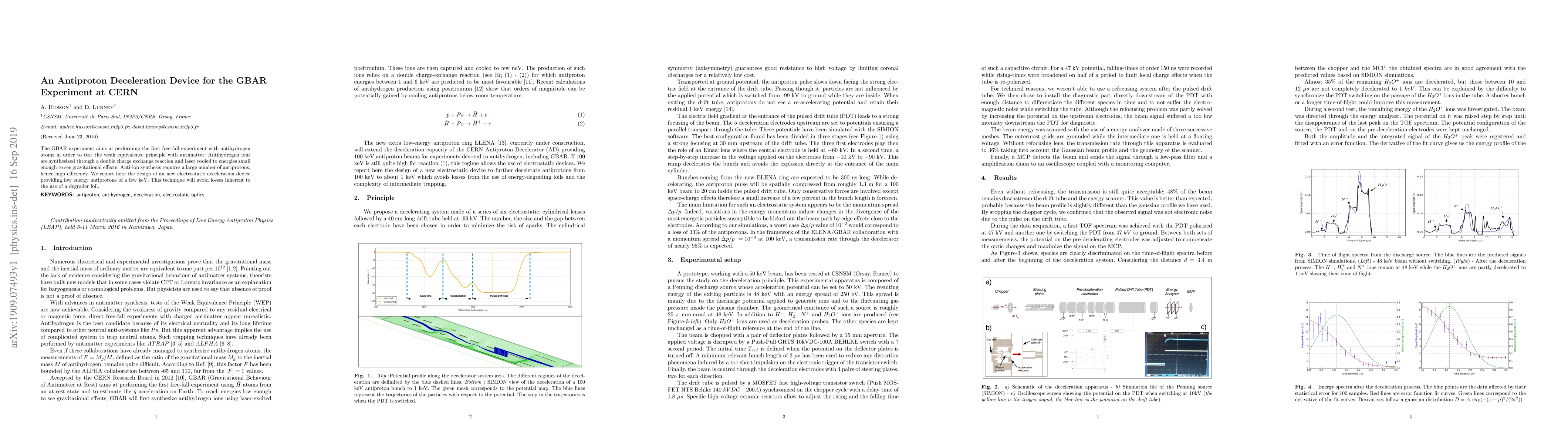 The GBAR experiment at CERN seeks to test the weak equivalence principle with antimatter through a free-fall experiment using antihydrogen. A new electrostatic deceleration device has been designed to efficiently decelerate antiprotons to a few keV, avoiding losses typically associated with degrader foils.
