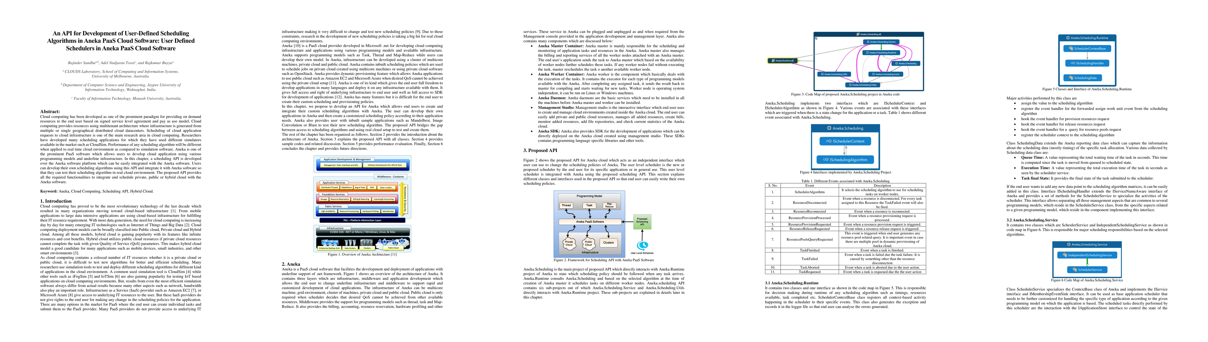 This paper introduces an API for developing and integrating user-defined scheduling algorithms within Aneka PaaS cloud software, enabling users to test their algorithms in real cloud environments. The proposed API facilitates the scheduling of private, public, or hybrid clouds, bridging the gap between simulation and real-world performance.