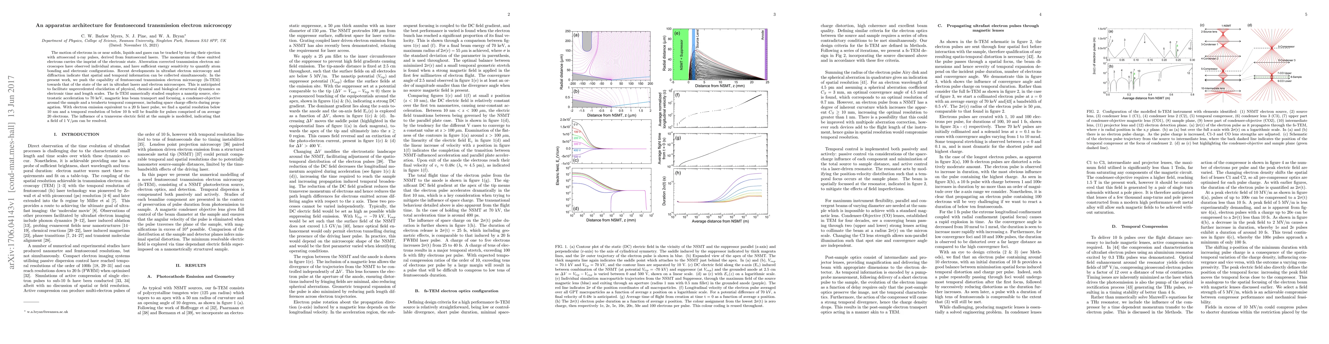 This paper proposes an advanced femtosecond transmission electron microscopy (fs-TEM) architecture that combines ultrafast laser technology with electron microscopy to achieve unprecedented spatial and temporal resolution. The design includes a nanotip source, electrostatic acceleration, magnetic lens focusing, and a terahertz temporal compressor, enabling resolutions below 10 nm and 10 fs for electron pulses of 20 electrons.