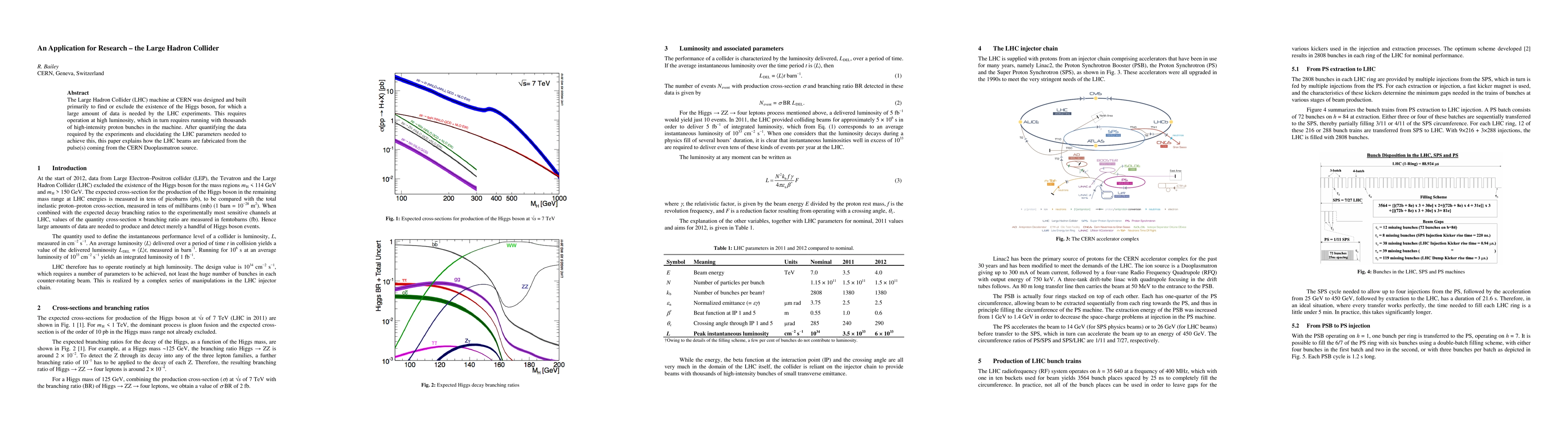 The Large Hadron Collider (LHC) machine at CERN was designed and built primarily to find or exclude the existence of the Higgs boson, for which a large amount of data is needed by the LHC experiments. This requires operation at high luminosity, which in turn requires running with thousands of high-intensity proton bunches in the machine. After quantifying the data required by the experiments and elucidating the LHC parameters needed to achieve this, this paper explains how the LHC beams are fabricated from the pulse(s) coming from the CERN Duoplasmatron source.