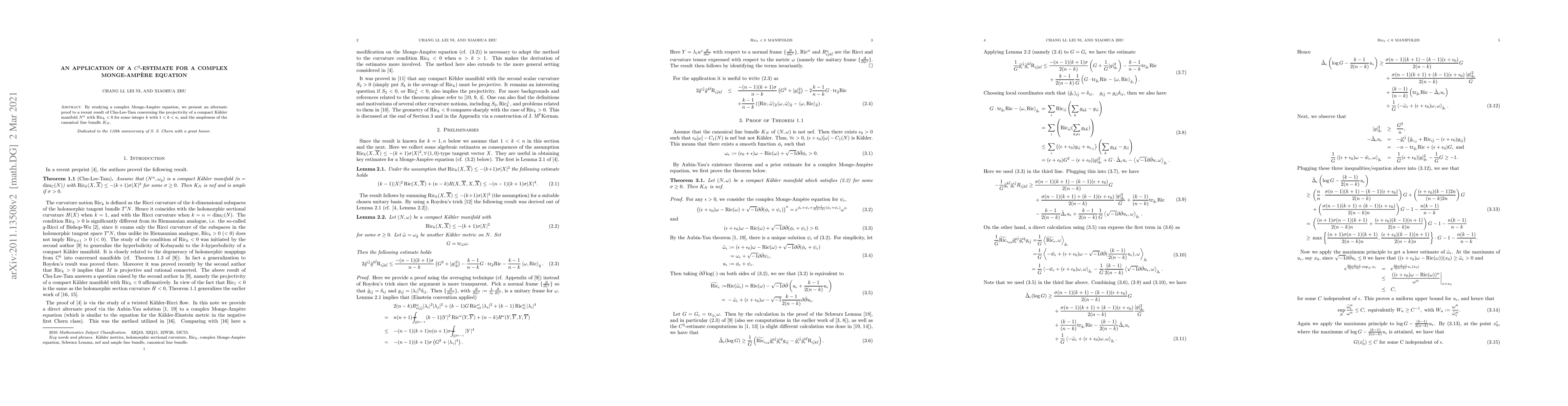 By studying a complex Monge-Amp\`ere equation, we present an alternate proof