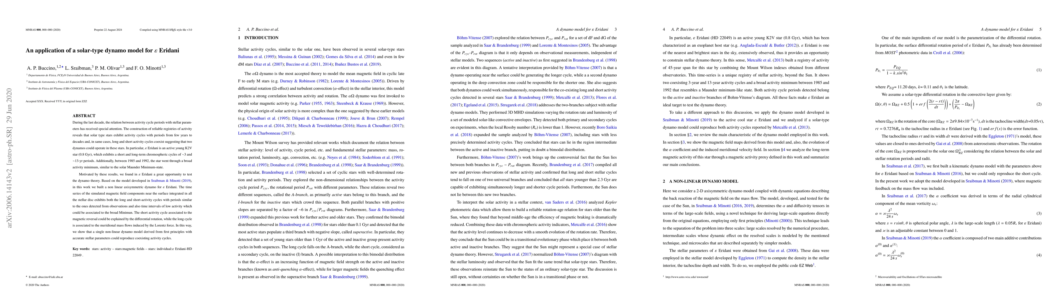 This paper applies a solar-type dynamo model to Epsilon Eridani, demonstrating that the model can reproduce both the short (3-yr) and long (13-yr) activity cycles observed in the star. The study suggests differential rotation explains the short cycle, while meridional mass flows induced by the Lorentz force account for the long cycle.
