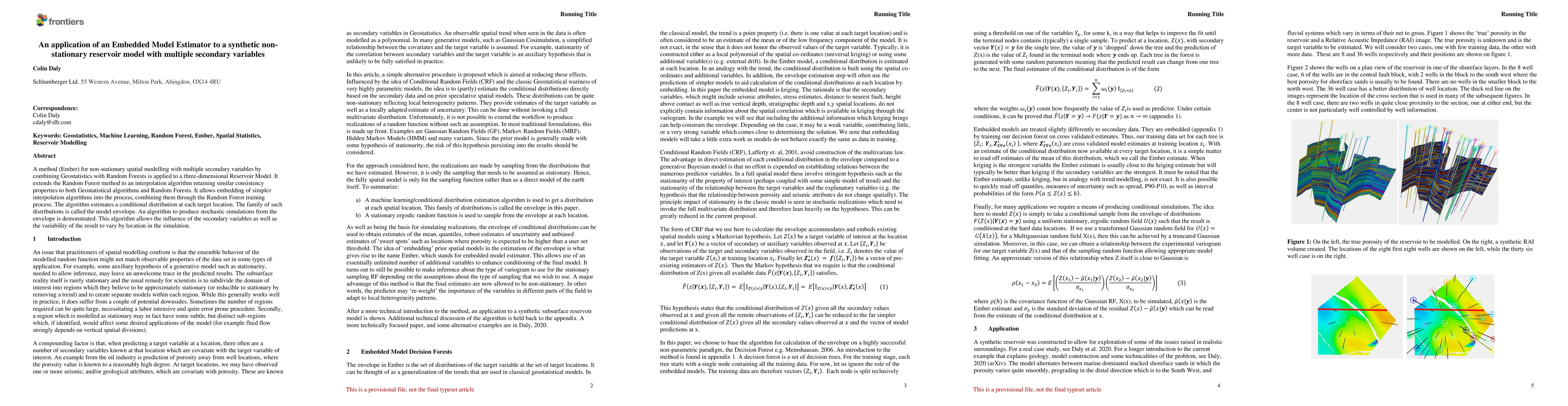 A method (Ember) for non-stationary spatial modelling with multiple secondary variables by combining Geostatistics with Random Forests is applied to a three-dimensional Reservoir Model. It extends the Random Forest method to an interpolation algorithm retaining similar consistency properties to both Geostatistical algorithms and Random Forests. It allows embedding of simpler interpolation algorithms into the process, combining them through the Random Forest training process. The algorithm estimates a conditional distribution at each target location. The family of such distributions is called the model envelope. An algorithm to produce stochastic simulations from the envelope is demonstrated. This algorithm allows the influence of the secondary variables as well as the variability of the result to vary by location in the simulation.