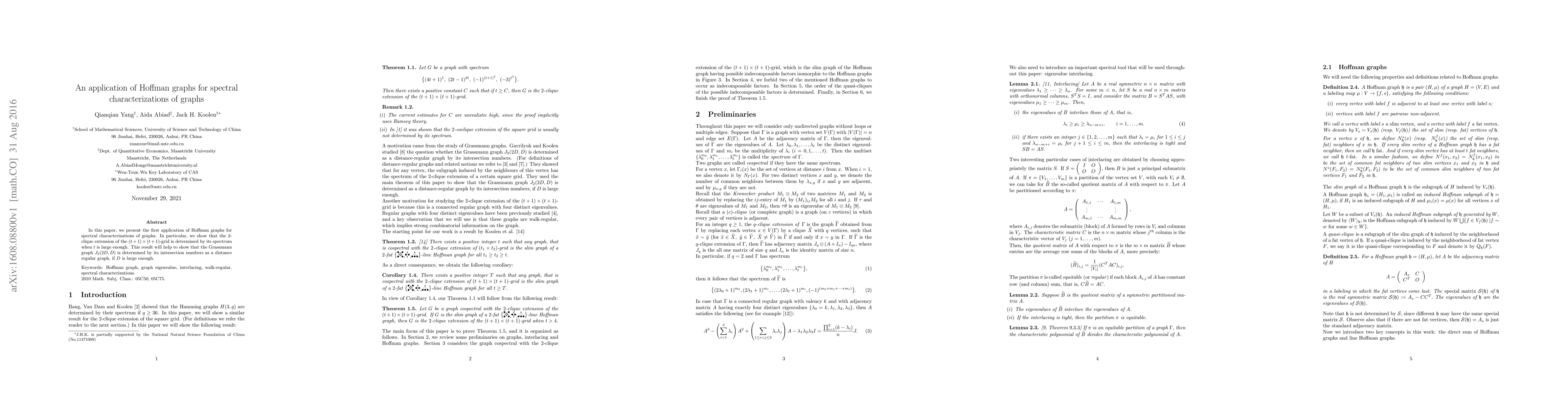 This paper applies Hoffman graphs to spectral characterizations, proving that the $2$-clique extension of a $(t+1)\times(t+1)$-grid is determined by its spectrum for large $t$, and uses this to show that the Grassmann graph $J_2(2D,D)$ is determined by its intersection numbers when $D$ is sufficiently large.