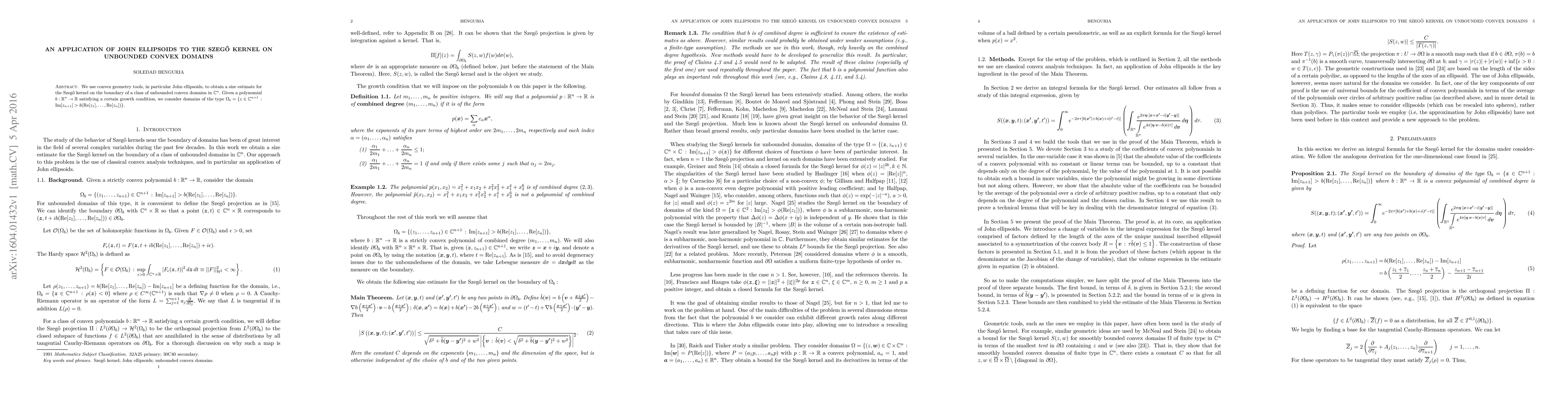 We use convex geometry tools, in particular John ellipsoids, to obtain a size estimate for the Szeg\H{o} kernel on the boundary of a class of unbounded convex domains in $\mathbb{C}^n.$ Given a polynomial $b:\mathbb{R}^n \rightarrow \mathbb{R}$ satisfying a certain growth condition, we consider domains of the type $\Omega_b = \{ z\in\mathbb{C}^{n+1}\,:\, {\rm Im}[z_{n+1}] > b({\rm Re}[z_1],\ldots,{\rm Re}[z_n]) \}.$