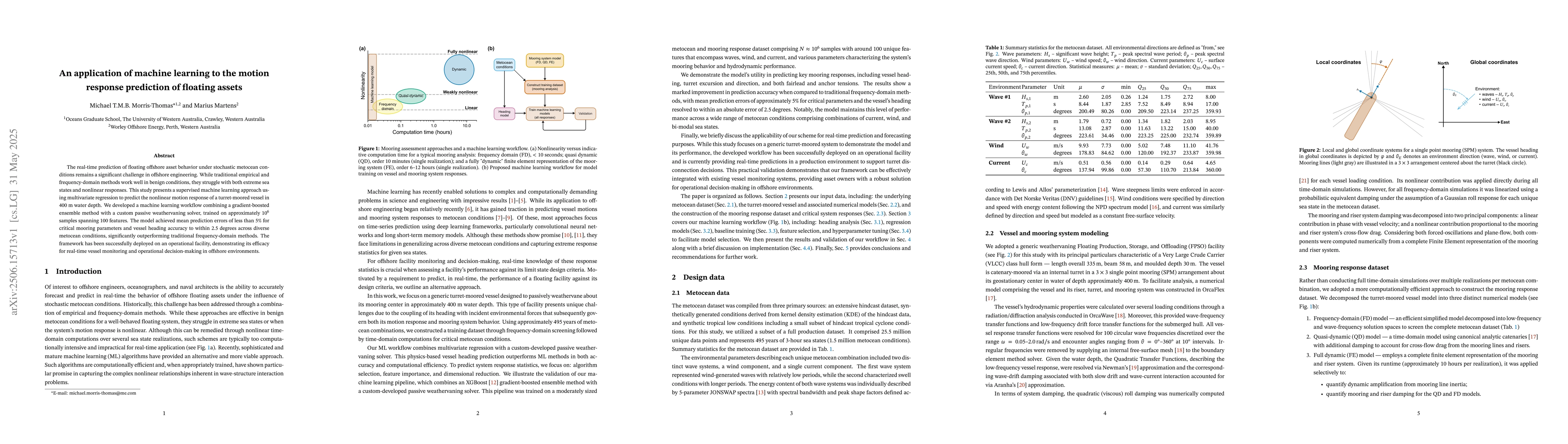 The real-time prediction of floating offshore asset behavior under stochastic metocean conditions remains a significant challenge in offshore engineering. While traditional empirical and frequency-domain methods work well in benign conditions, they struggle with both extreme sea states and nonlinear responses. This study presents a supervised machine learning approach using multivariate regression to predict the nonlinear motion response of a turret-moored vessel in 400 m water depth. We developed a machine learning workflow combining a gradient-boosted ensemble method with a custom passive weathervaning solver, trained on approximately $10^6$ samples spanning 100 features. The model achieved mean prediction errors of less than 5% for critical mooring parameters and vessel heading accuracy to within 2.5 degrees across diverse metocean conditions, significantly outperforming traditional frequency-domain methods. The framework has been successfully deployed on an operational facility, demonstrating its efficacy for real-time vessel monitoring and operational decision-making in offshore environments.