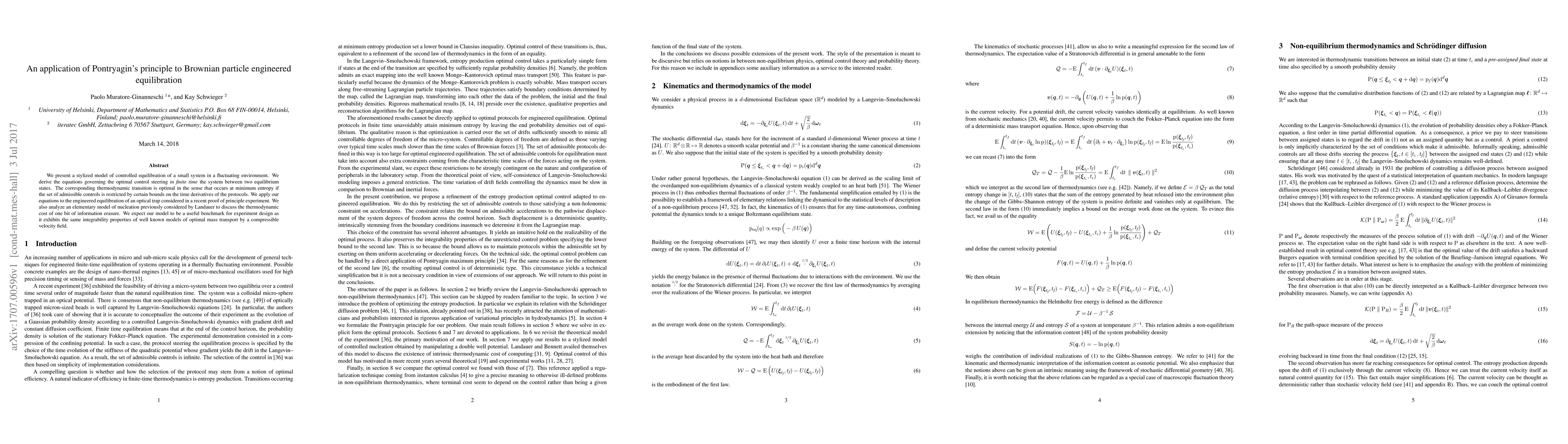 A stylized model of controlled equilibration is derived using Pontryagin's principle.