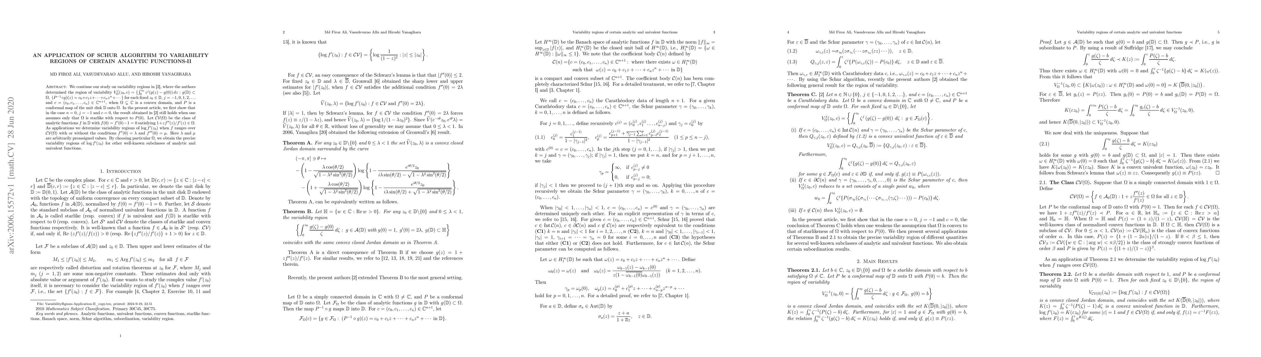 We continue our study on variability regions in \cite{Ali-Vasudevarao-Yanagihara-2018}, where the authors determined the region of variability $V_\Omega^j (z_0, c ) = \{ \int_0^{z_0} z^{j}(g(z)-g(0))\, d z : g({\mathbb D}) \subset \Omega, \; (P^{-1} \circ g) (z) = c_0 +c_1z + \cdots + c_n z^n + \cdots \}$ for each fixed $z_0 \in {\mathbb D}$, $j=-1,0,1,2, \ldots$ and $c = (c_0, c_1 , \ldots , c_n) \in \mathbb{C}^{n+1}$, when $\Omega\subsetneq\mathbb{C}$ is a convex domain, and $P$ is a conformal map of the unit disk ${\mathbb D}$ onto $\Omega$. In the present article, we first show that in the case $n=0$, $j=-1$ and $c=0$, the result obtained in \cite{Ali-Vasudevarao-Yanagihara-2018} still holds when one assumes only that $\Omega$ is starlike with respect to $P(0)$. Let $\mathcal{CV}(\Omega)$ be the class of analytic functions $f$ in ${\mathbb D}$ with $f(0)=f'(0)-1=0$ satisfying $1+zf''(z)/f'(z) \in {\Omega}$. As applications we determine variability regions of $\log f'(z_0)$ when $f$ ranges over $\mathcal{CV}(\Omega)$ with or without the conditions $f''(0)= \lambda$ and $f'''(0)= \mu$. Here $\lambda$ and $\mu$ are arbitrarily preassigned values. By choosing particular $\Omega$, we obtain the precise variability regions of $\log f'(z_0)$ for other well-known subclasses of analytic and univalent functions.
