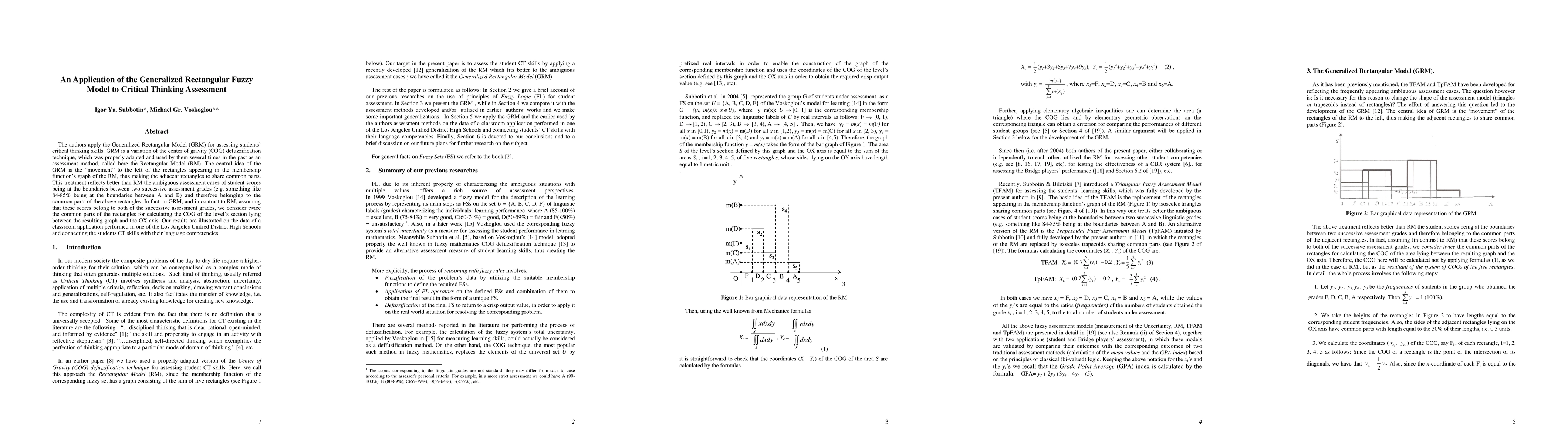 Summary: This paper utilizes the Generalized Rectangular Fuzzy Model to evaluate critical thinking skills and explores their correlation with language competency. The study aims to provide a nuanced assessment of critical thinking through a fuzzy logic framework.