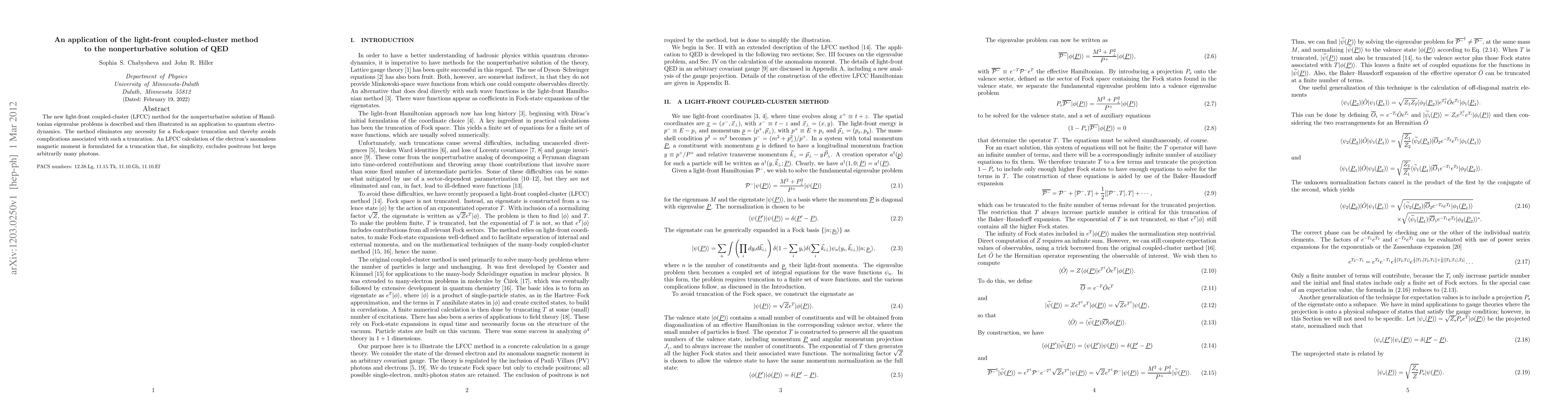 The new light-front coupled-cluster (LFCC) method for the nonperturbative solution of Hamiltonian eigenvalue problems is described and then illustrated in an application to quantum electrodynamics. The method eliminates any necessity for a Fock-space truncation and thereby avoids complications associated with such a truncation. An LFCC calculation of the electron's anomalous magnetic moment is formulated for a truncation that, for simplicity, excludes positrons but keeps arbitrarily many photons.