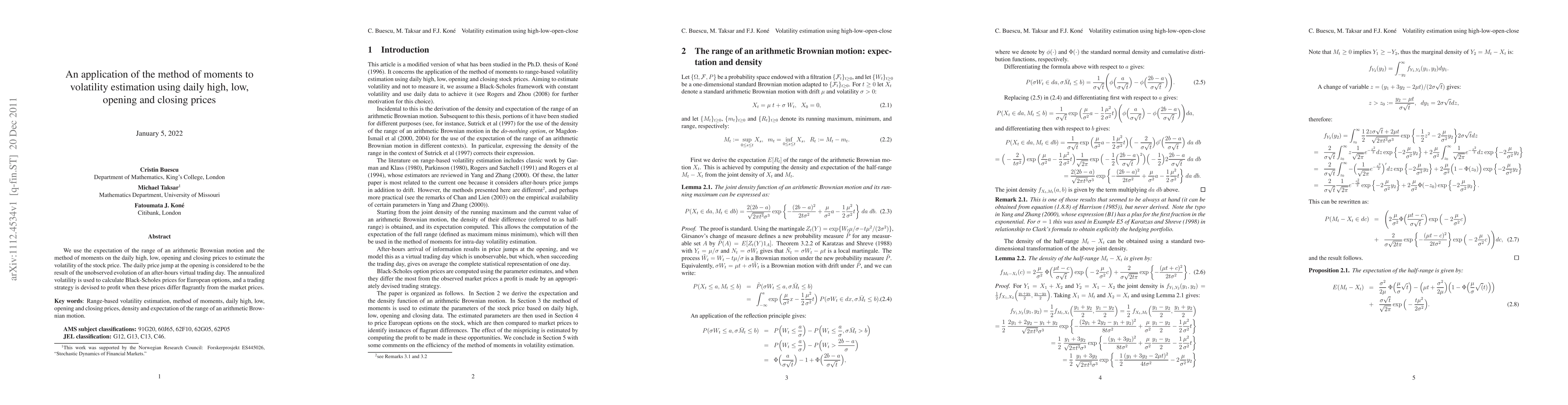 We use the expectation of the range of an arithmetic Brownian motion and the method of moments on the daily high, low, opening and closing prices to estimate the volatility of the stock price. The daily price jump at the opening is considered to be the result of the unobserved evolution of an after-hours virtual trading day.The annualized volatility is used to calculate Black-Scholes prices for European options, and a trading strategy is devised to profit when these prices differ flagrantly from the market prices.