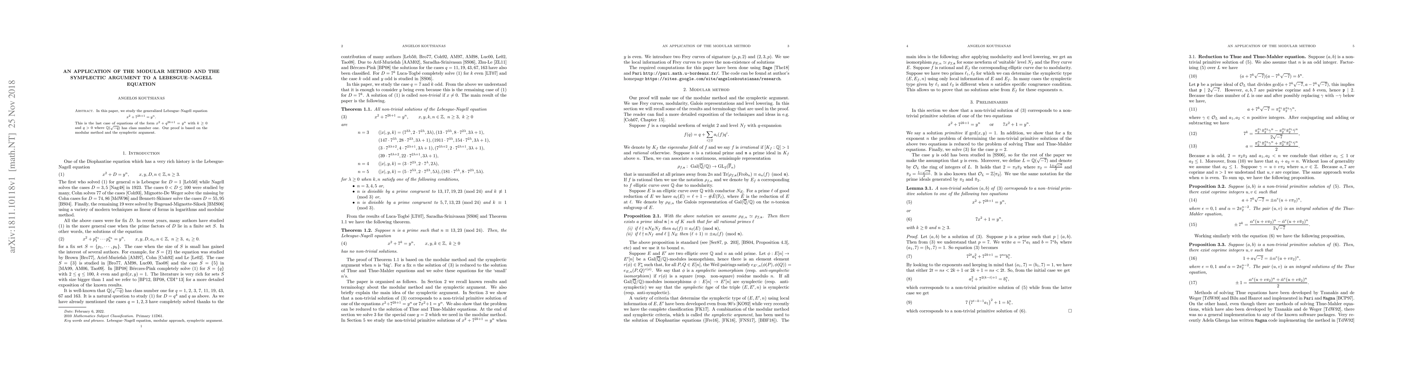 This paper solves a generalized Lebesgue-Nagell equation using modular method and symplectic argument, proving it has class number one solution for specific values of k and q.