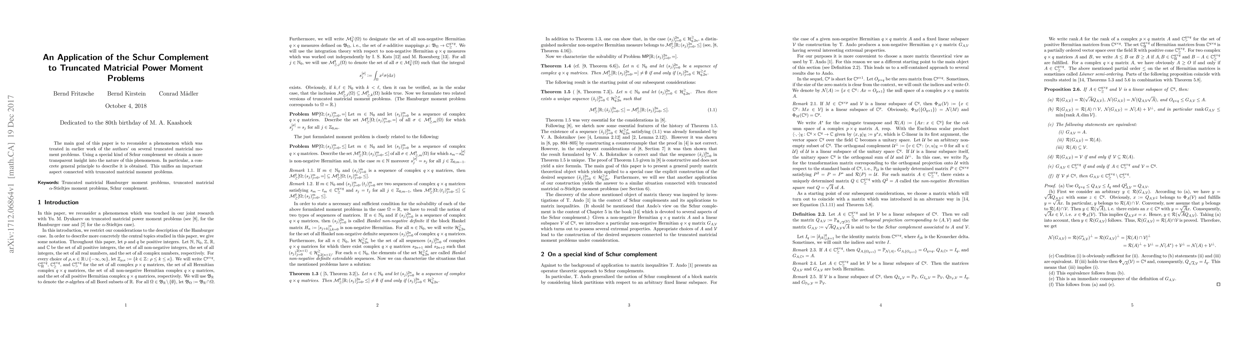 The main goal of this paper is to reconsider a phenomenon which was treated in earlier work of the authors' on several truncated matricial moment problems. Using a special kind of Schur complement we obtain a more transparent insight into the nature of this phenomenon. In particular, a concrete general principle to describe it is obtained. This unifies an important aspect connected with truncated matricial moment problems.
