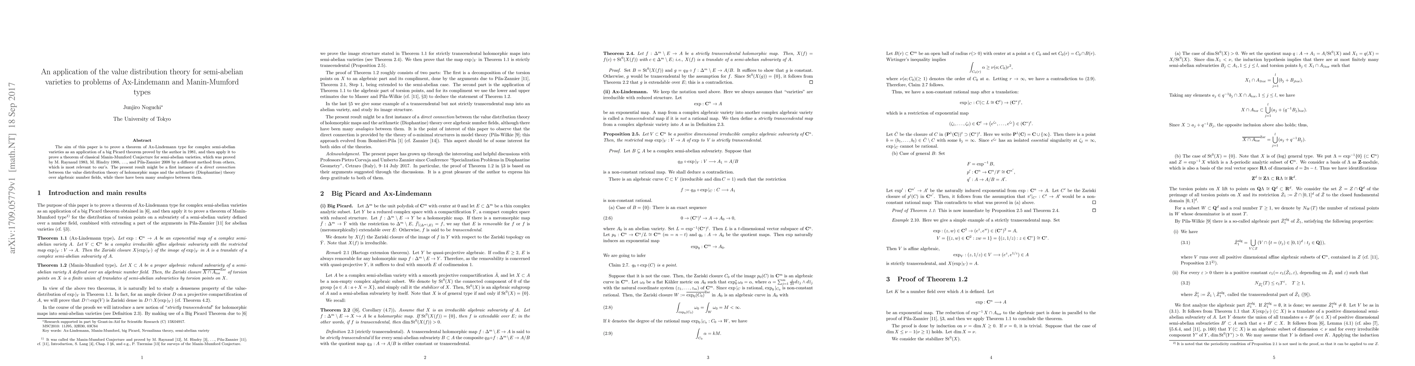 This paper applies the value distribution theory for semi-abelian varieties to establish an Ax-Lindemann theorem and a Manin-Mumford Conjecture result, demonstrating a novel direct link between holomorphic map distribution and arithmetic Diophantine theory over algebraic number fields.