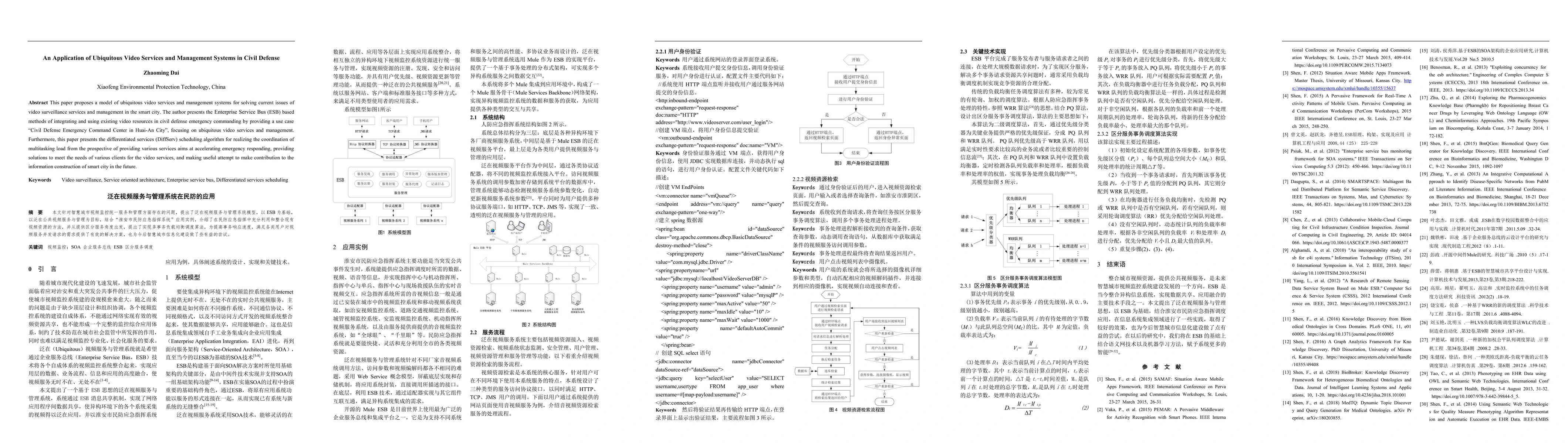 This paper proposes a model of ubiquitous video services and management systems for solving current issues of video surveillance services and management in the smart city. The author presents the Enterprise Service Bus (ESB) based methods of integrating and using existing video resources in civil defense emergency commanding by providing a use case "Civil Defense Emergency Command Center in Huai-An City", focusing on ubiquitous video services and management. Furthermore, this paper presents the differentiated services (DiffServ) scheduling algorithm for realizing the coordination of multitasking load from the prospective of providing various services aims at accelerating emergency responding, providing solutions to meet the needs of various clients for the video services, and making useful attempt to make contribution to the information construction of smart city in the future.