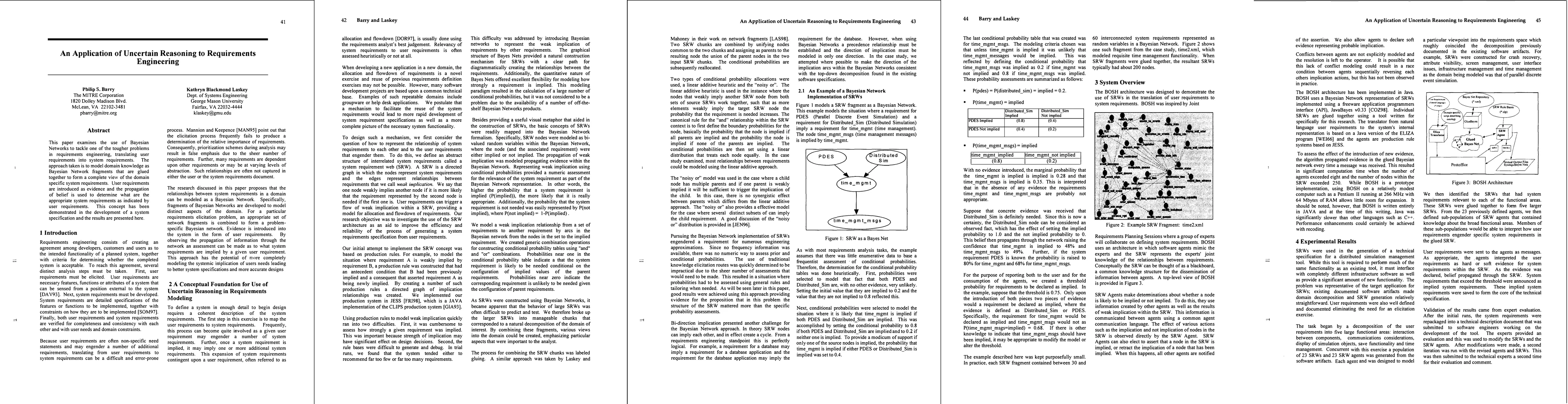 This paper examines the use of Bayesian Networks to tackle one of the tougher problems in requirements engineering, translating user requirements into system requirements. The approach taken is to model domain knowledge as Bayesian Network fragments that are glued together to form a complete view of the domain specific system requirements. User requirements are introduced as evidence and the propagation of belief is used to determine what are the appropriate system requirements as indicated by user requirements. This concept has been demonstrated in the development of a system specification and the results are presented here.